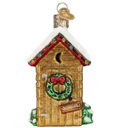 как выглядит Old World Christmas Holiday Outhouse Glass Tree Ornament FREE BOX 20130 фото