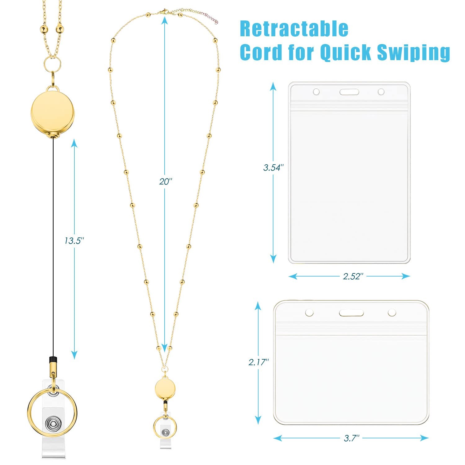 Retractable Badge Reel Lanyard with 2 ID Holders - Gold Beaded Chain