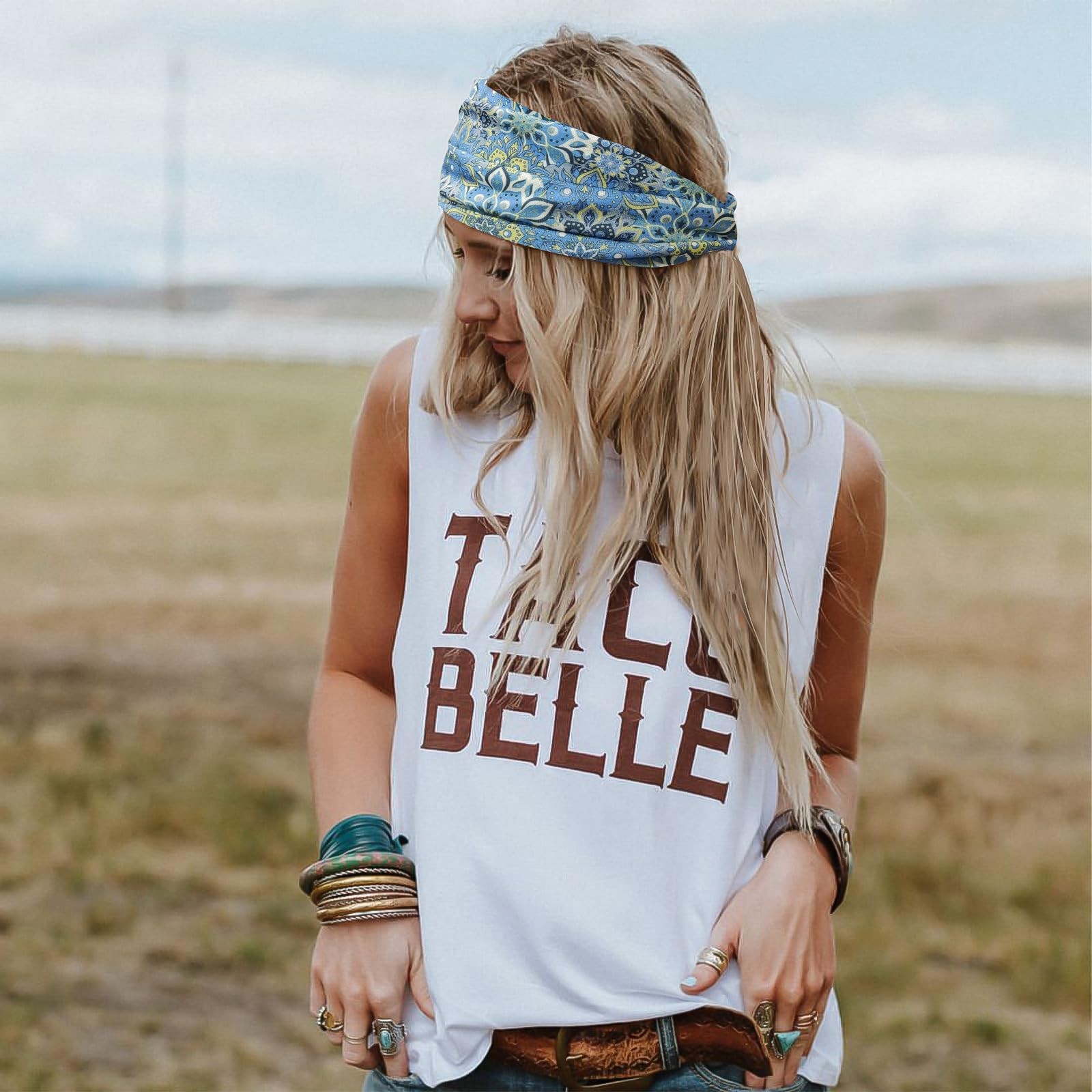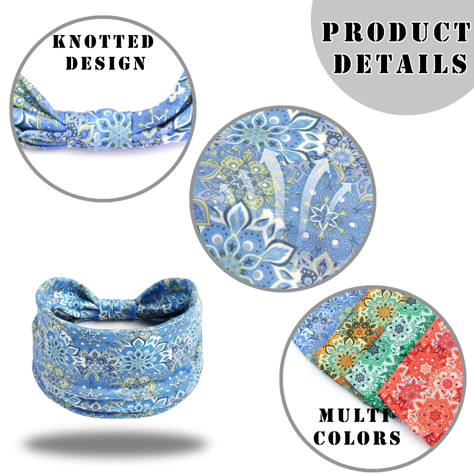 как выглядит Wide Headbands for Women Floral Printed Boho Hairband Elastic Knotted Bandana... фото