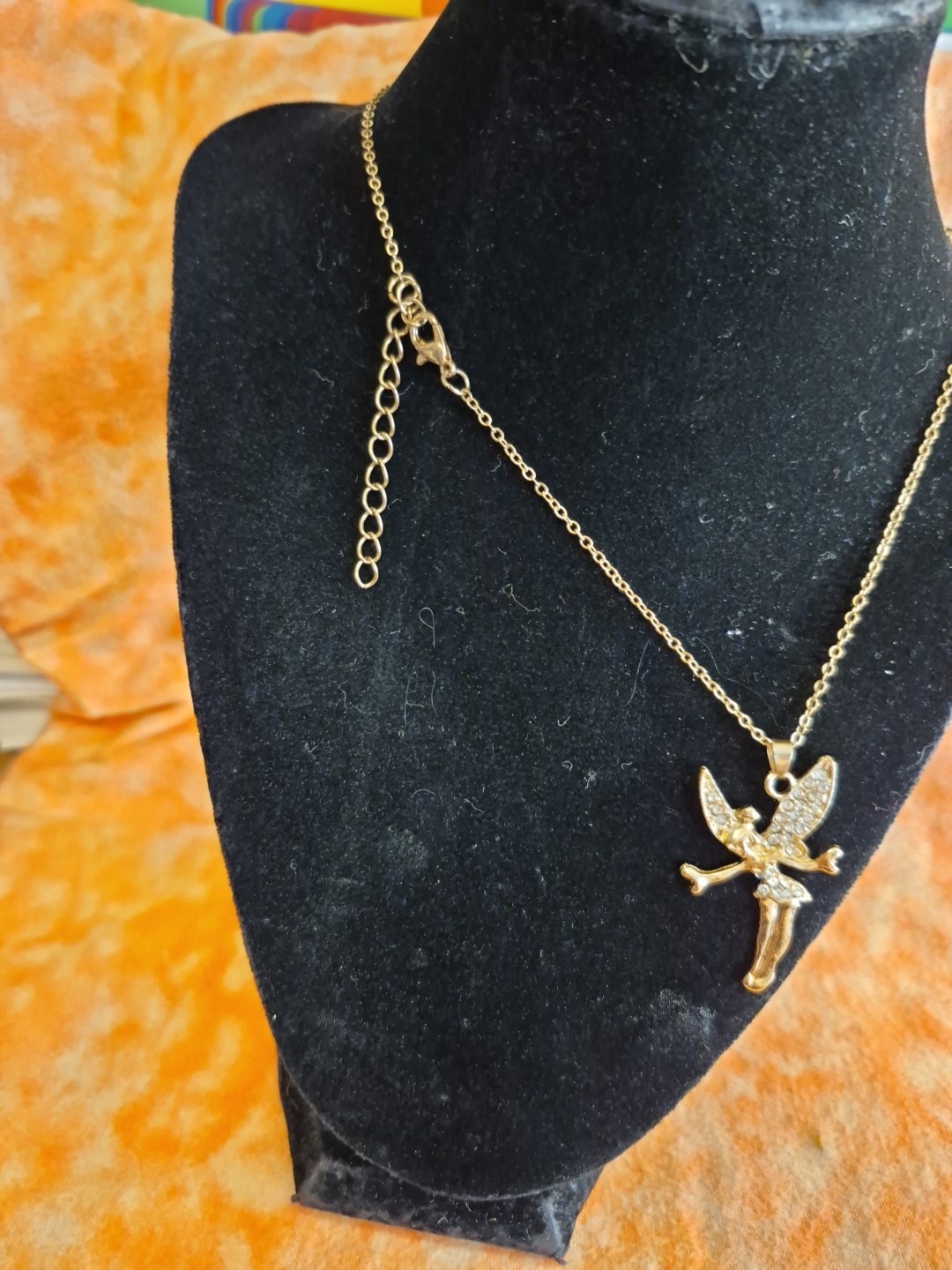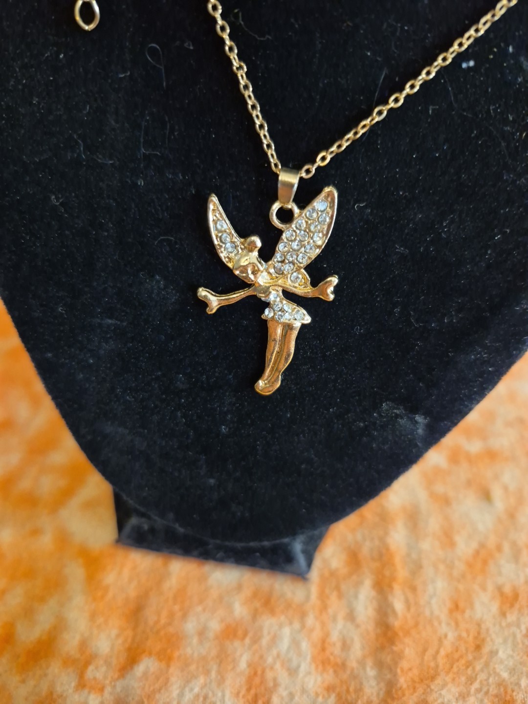 Tinkerbell charm 18-20 necklace gold color with crystals rhinestones.