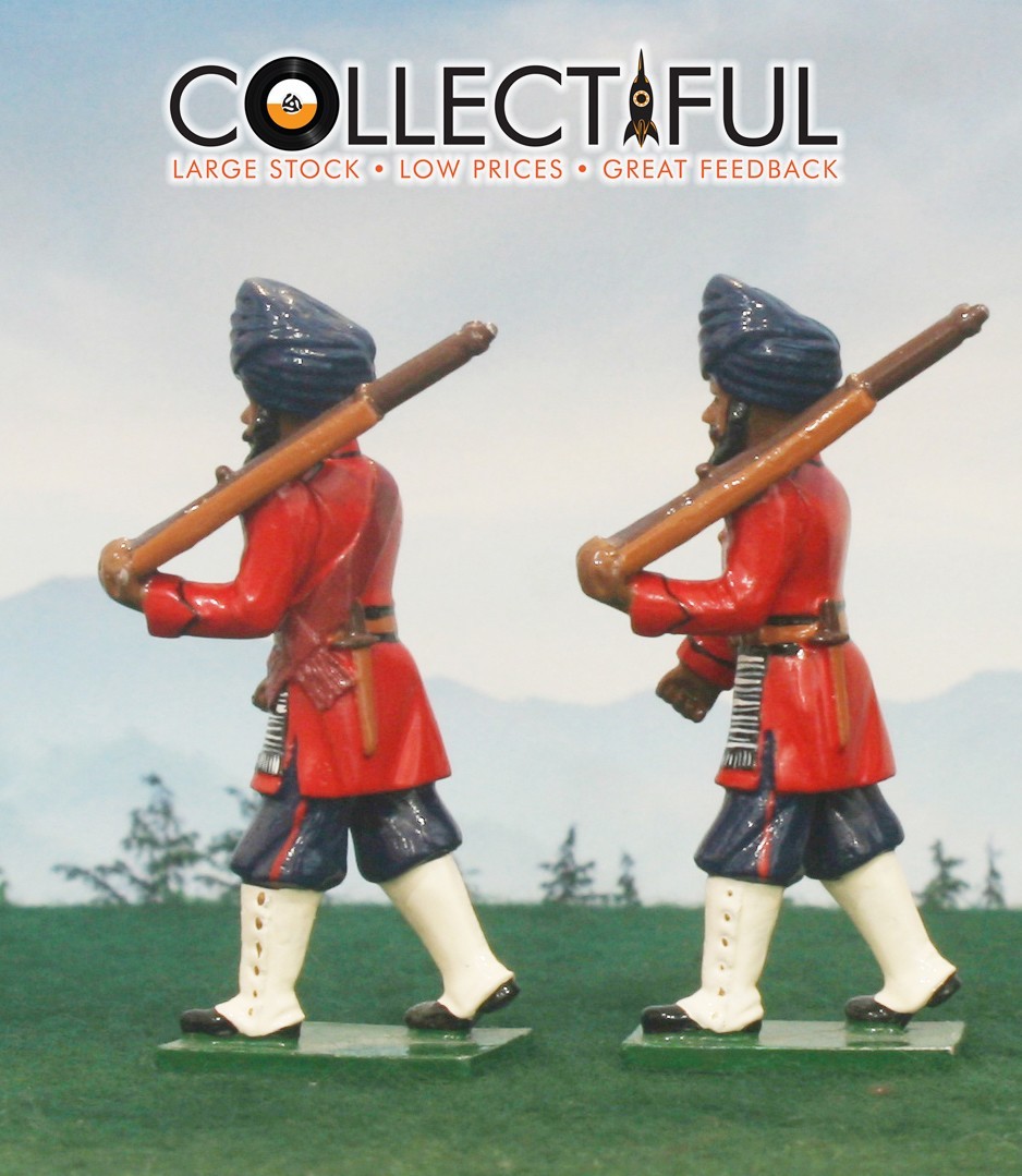 LEAD INDIAN SOLDIERS MARCHING WITH RIFLES X2 - SIKH - BRITAINS SIZE 1395