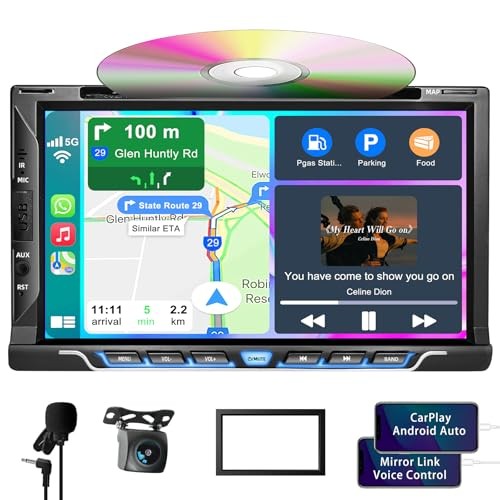 Double Din car Stereo with CD/DVD Player- CarPlay Android Auto, Car Audio