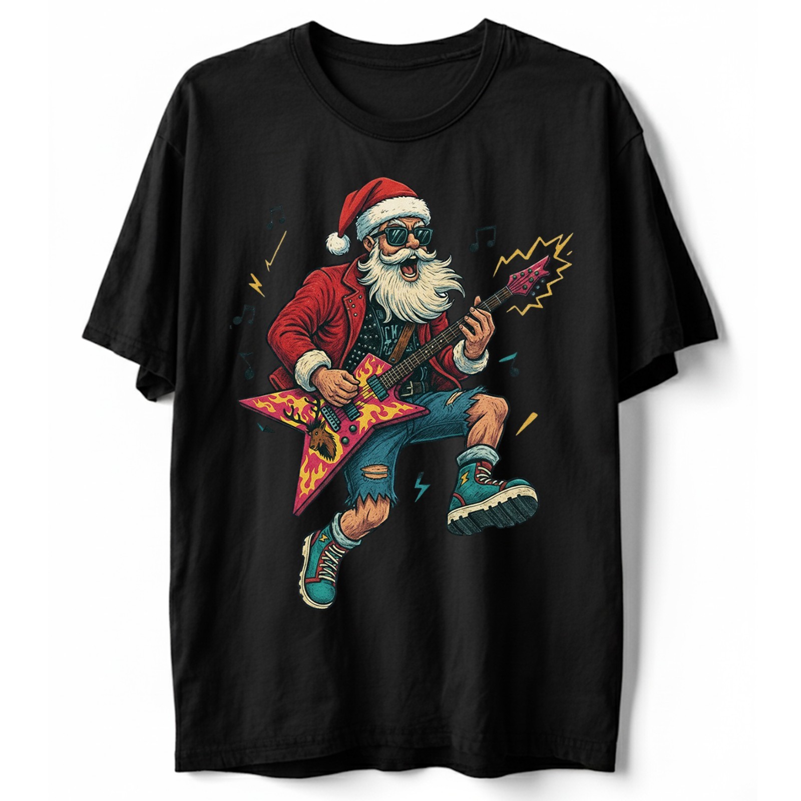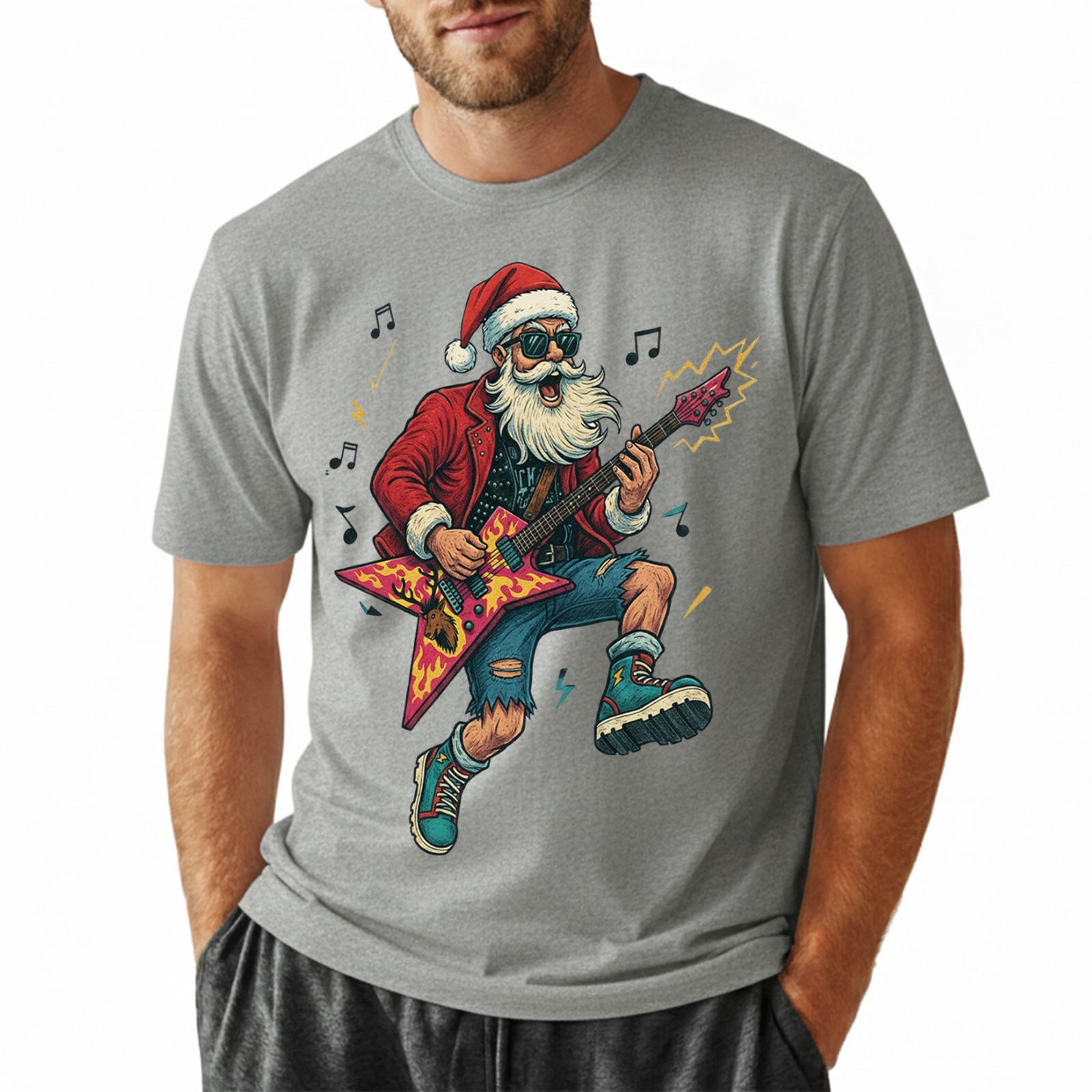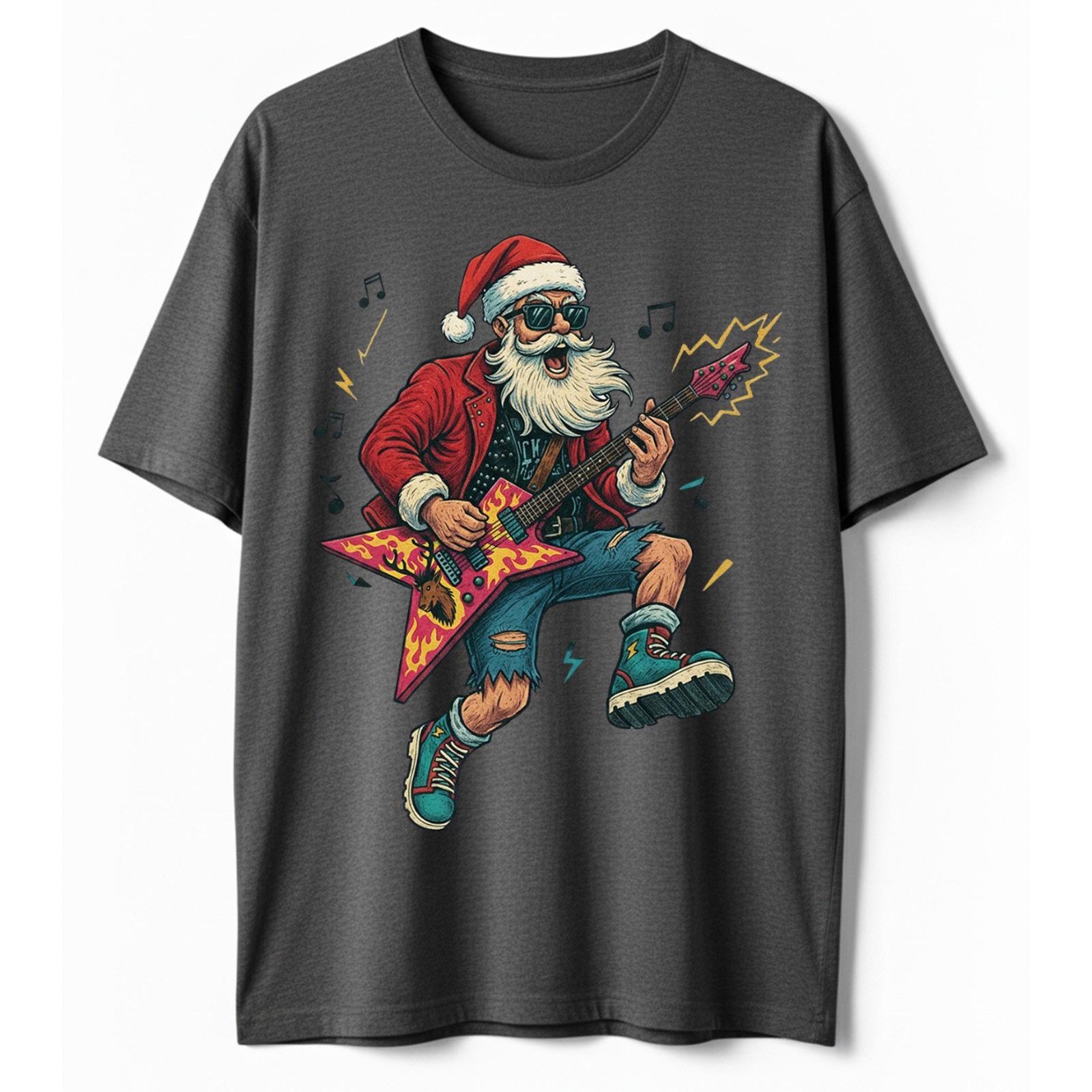 Heavy Metal Santa T-Shirt Funny Christmas Rock and Roll Guitar Graphic Tee S-5XL