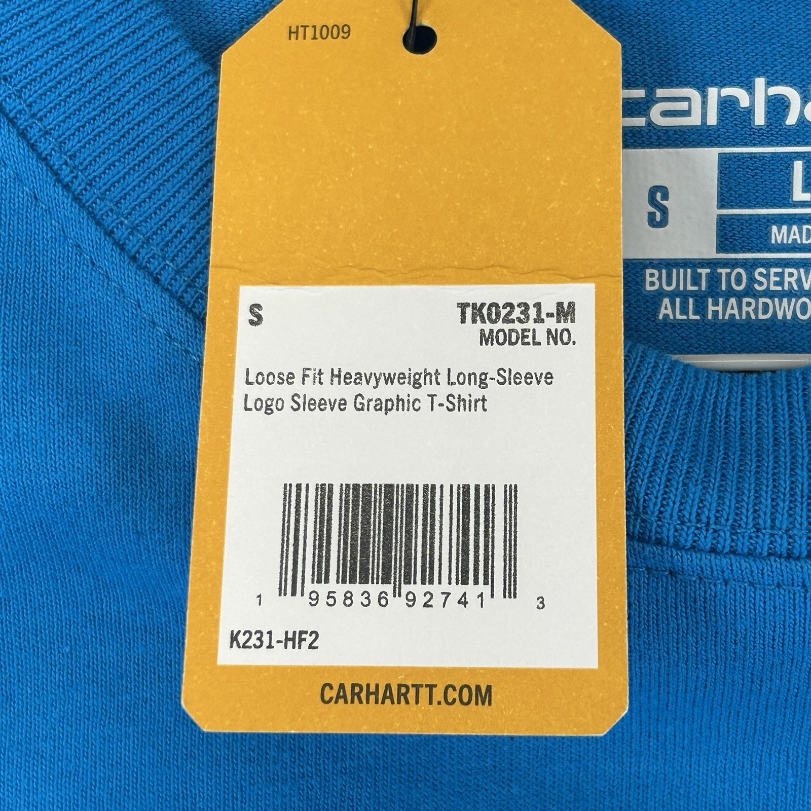 как выглядит Carhartt Shirt Men s Small Blue Long Sleeve Heavyweight Loose Fit Work Wear Logo фото
