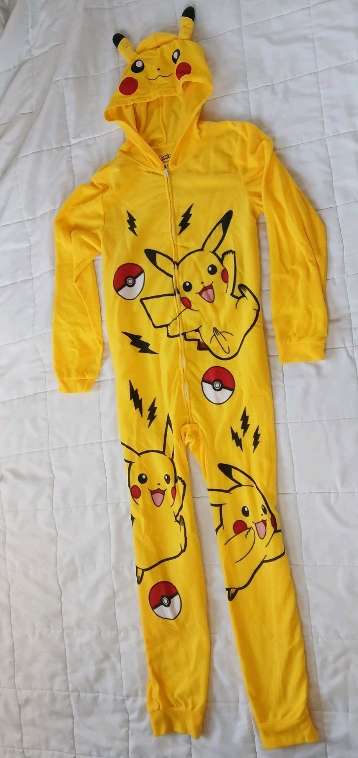 как выглядит Pokemon Pickachu One Piece Sleepwear With Hood Kids Size 14/16 фото
