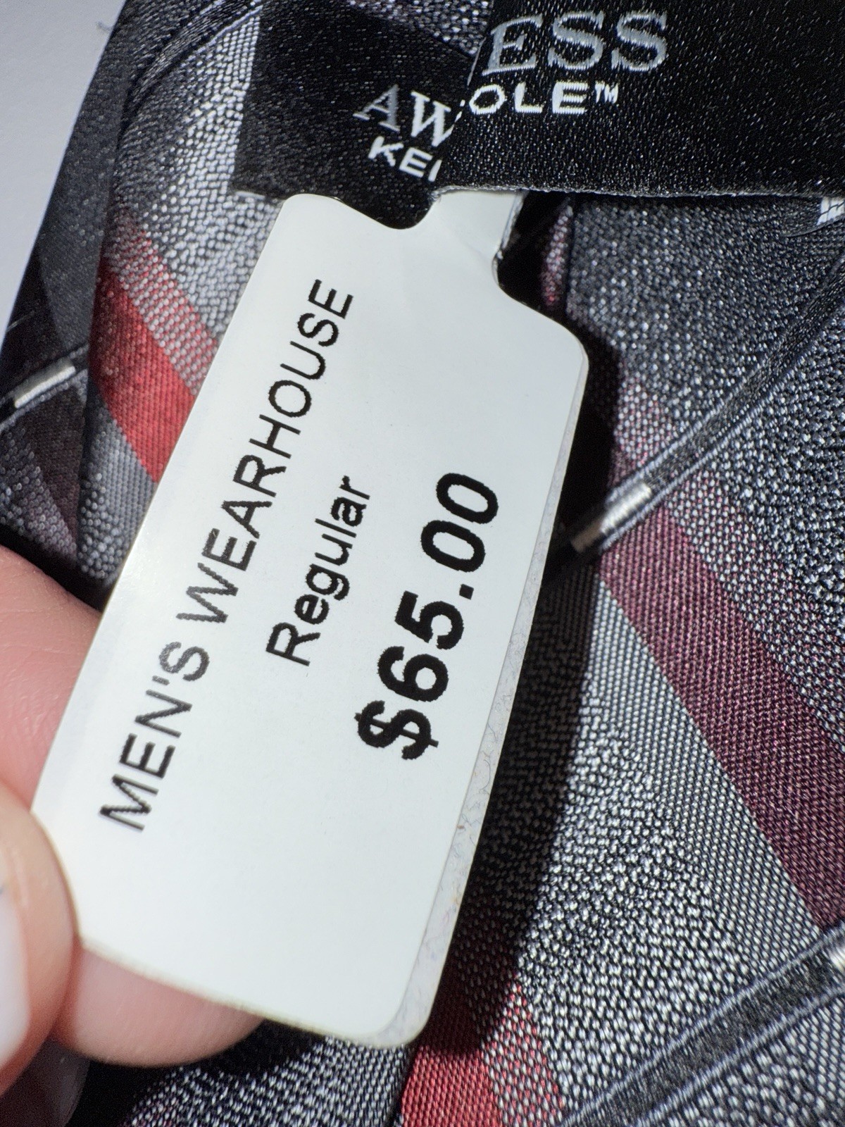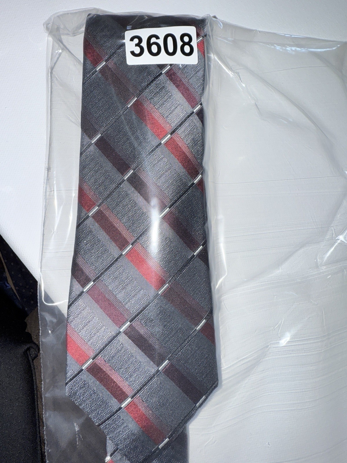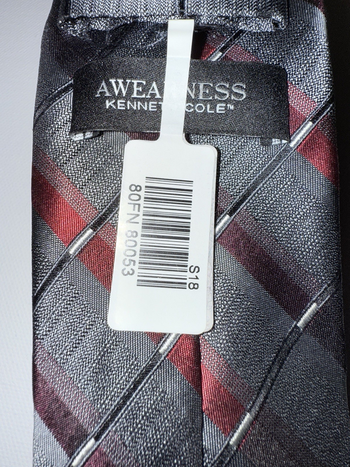 Kenneth Cole Reaction AWEARNESS Plaid Tie Gray Red Black Classic Menswear
