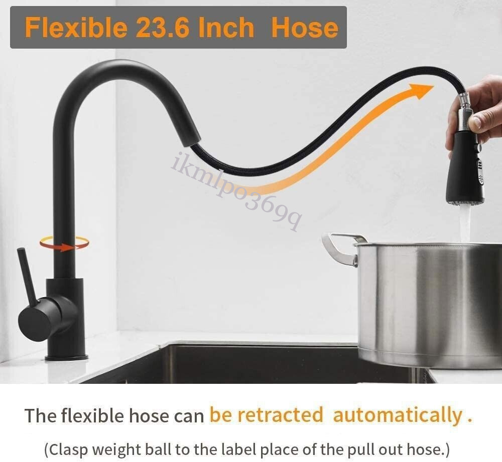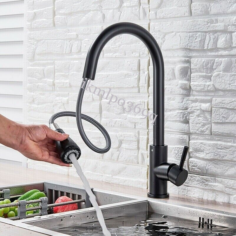 Kitchen Sink Faucet 1/2 Pull Down/Out Sprayer Swivel Single Handle Mixer Taps