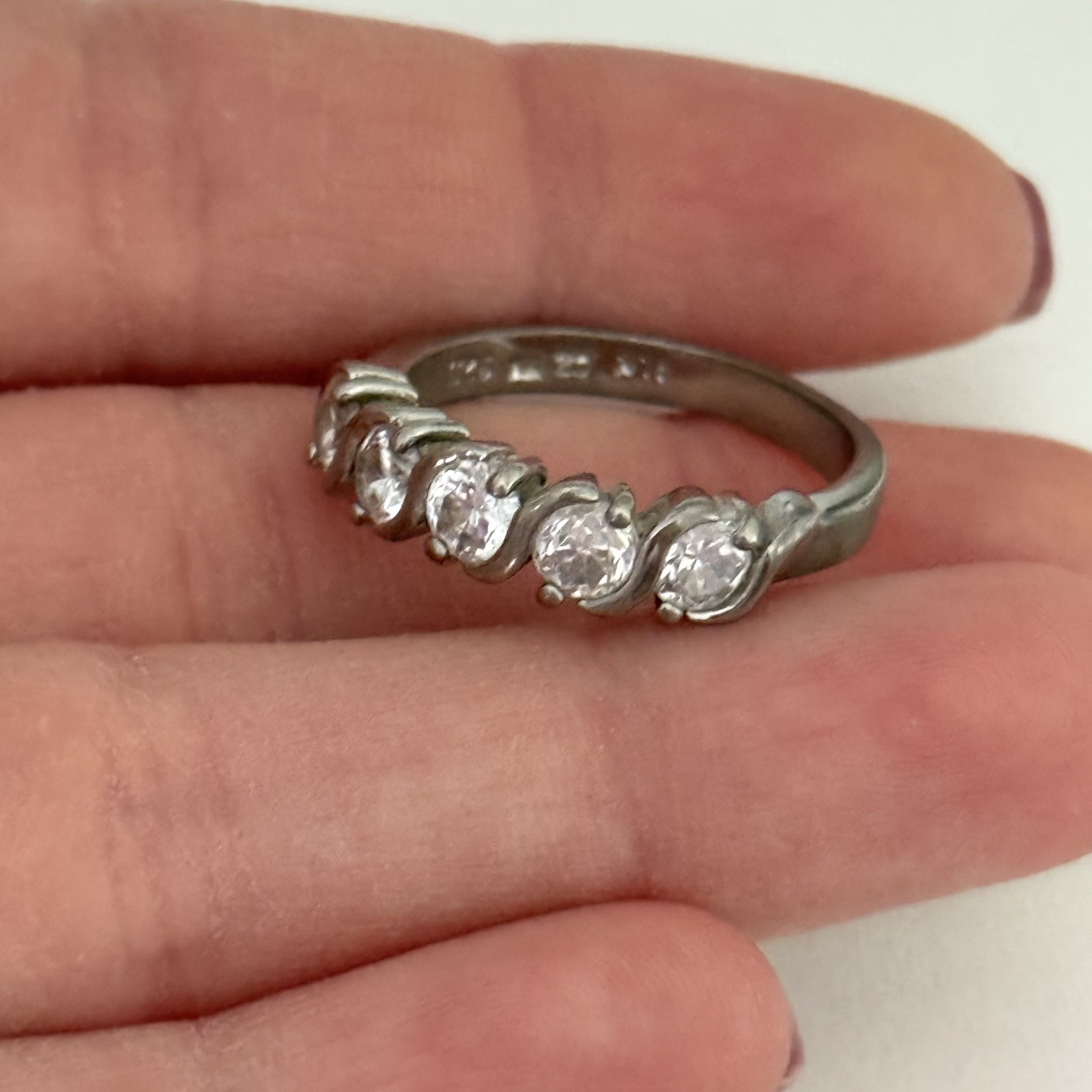 Vintage 925 Sterling Silver Clear CZ Five Stone Ladies Band Ring Size 8