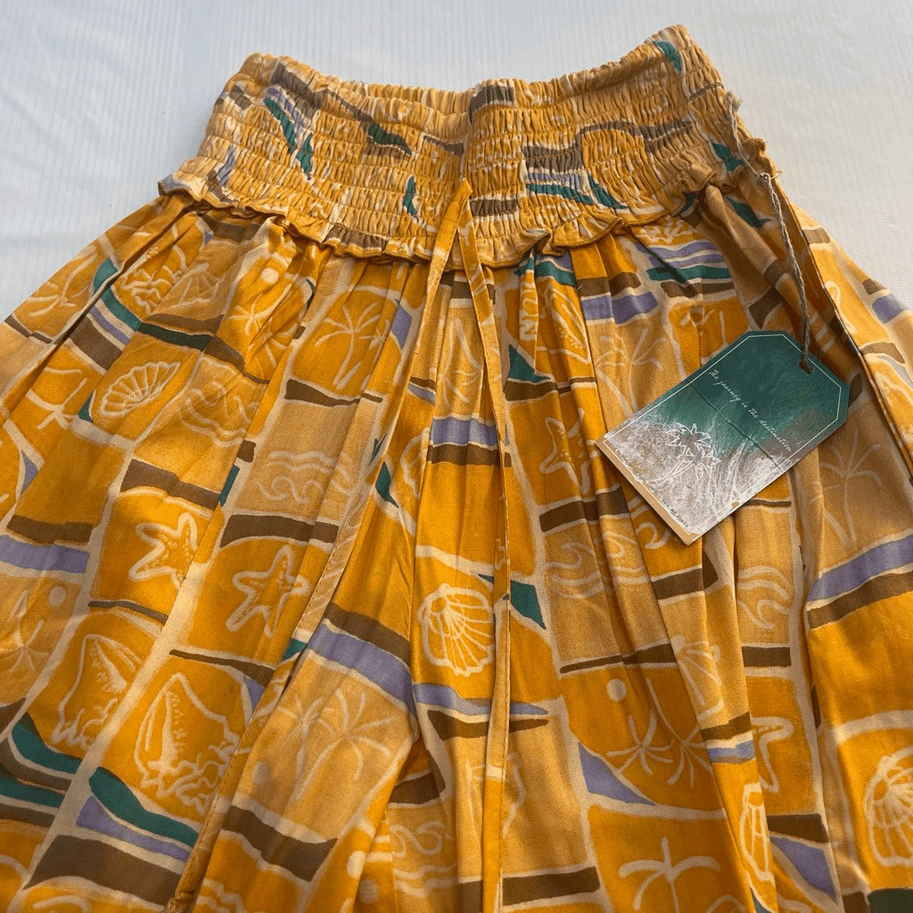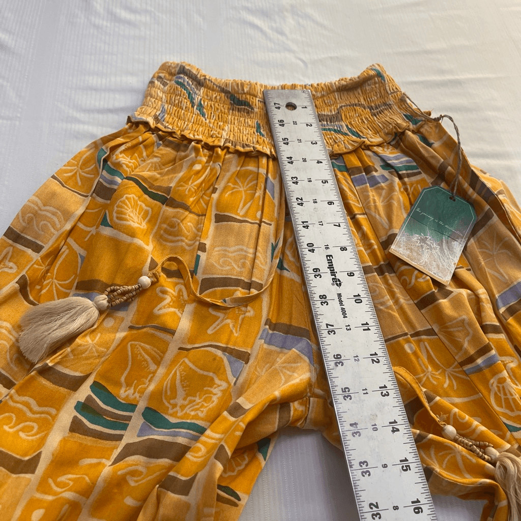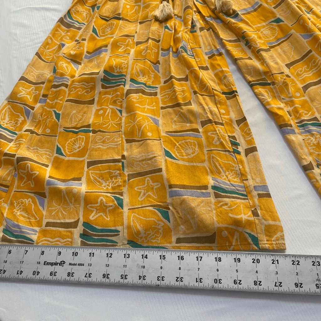 NWT True Destinations Resort Wear Yellow Tropical Wide Leg Palazzo Pants Size XS