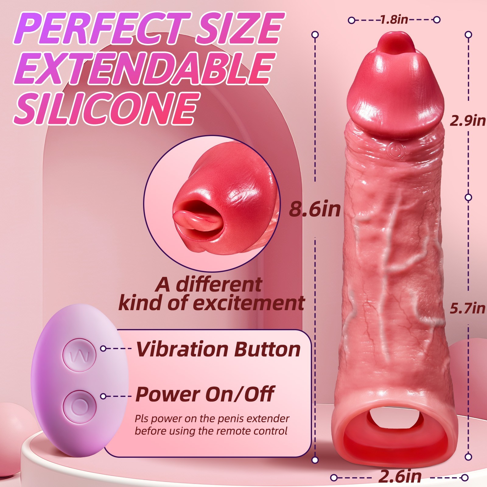 Vibrating Penis Extender Sleeve Cock Ring Sheath Vibrator Sex Toy for Men Couple