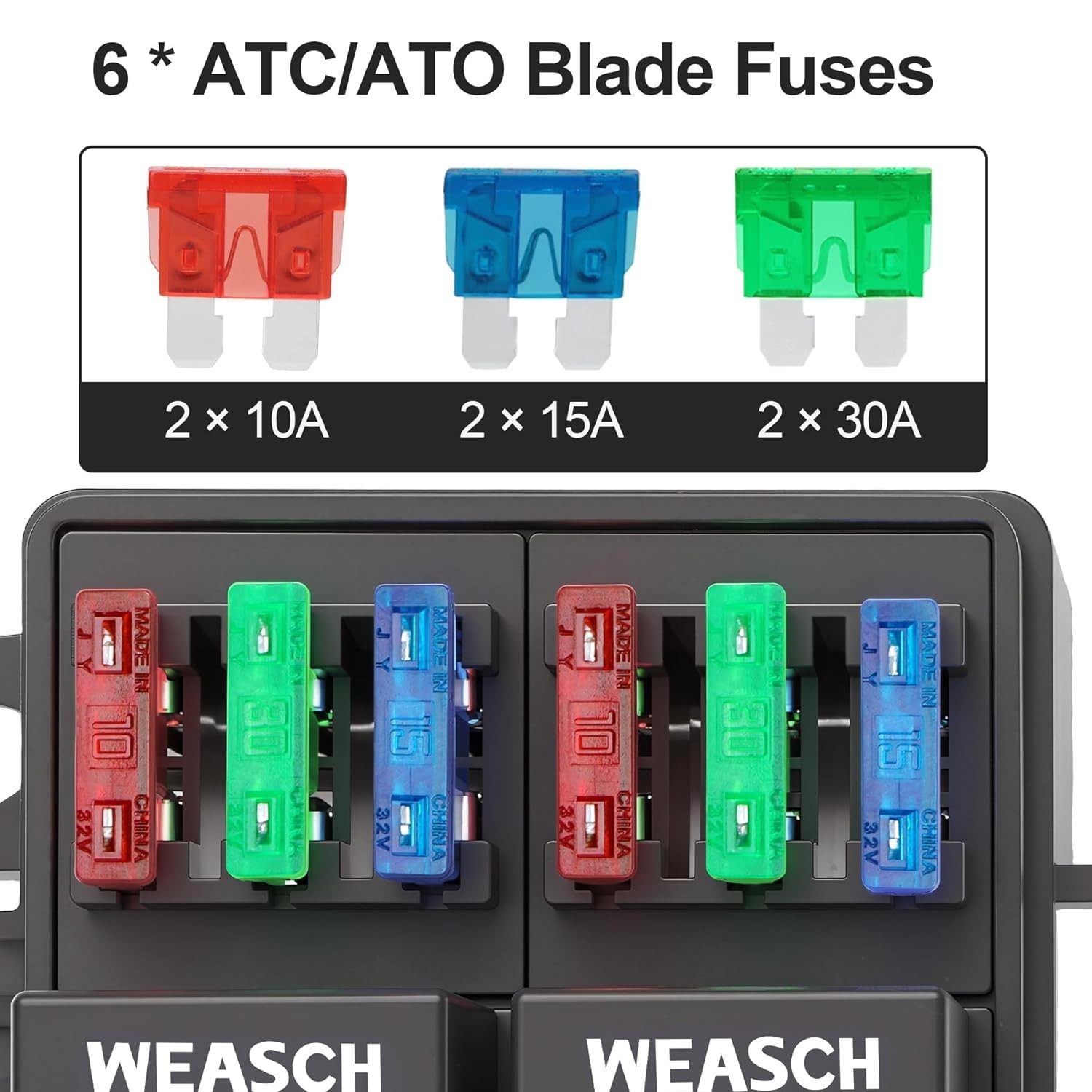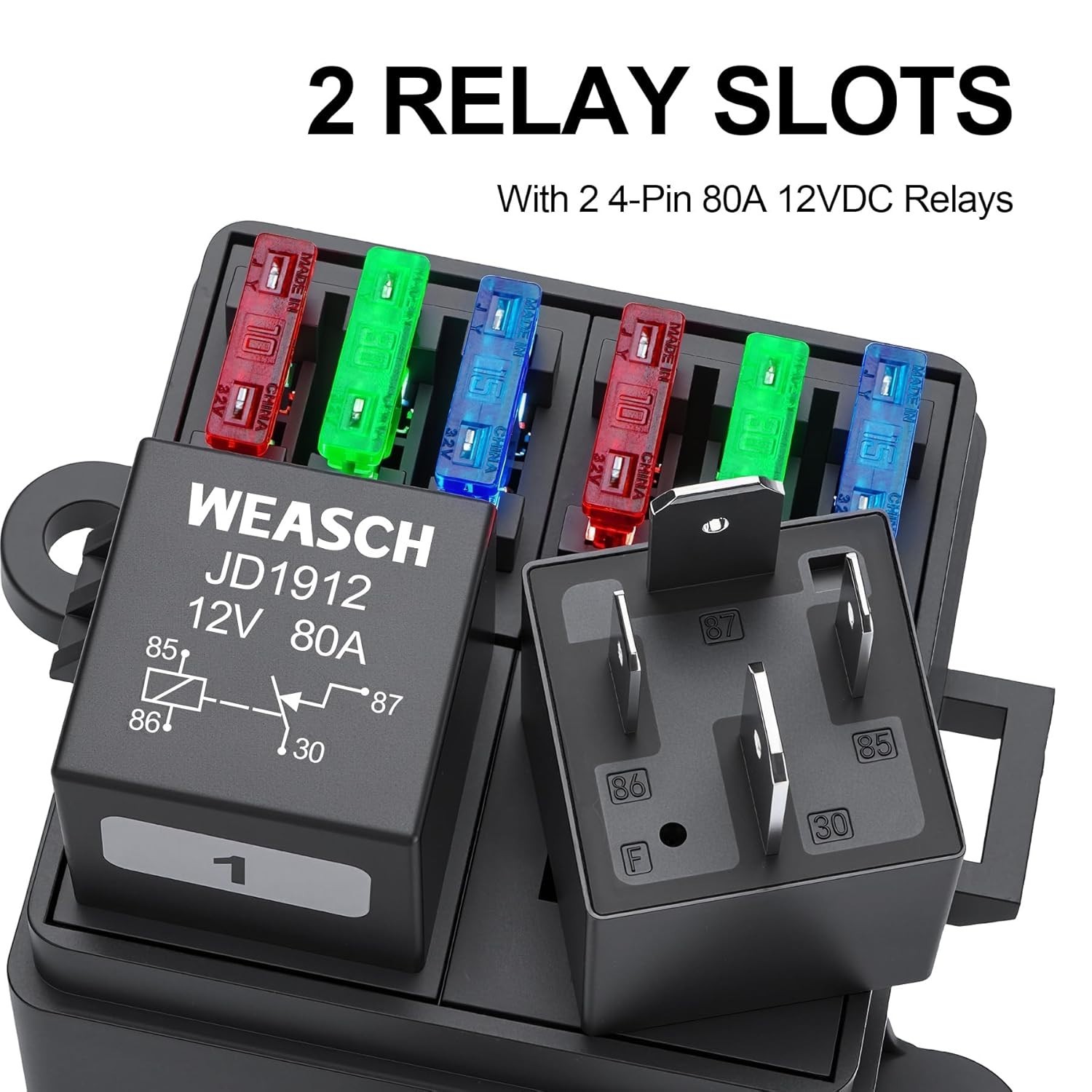 12V Pre-Wired Fuse Relay Box 4-Pin 80A Relay Block and Kit 2 Relays and 6 ATC