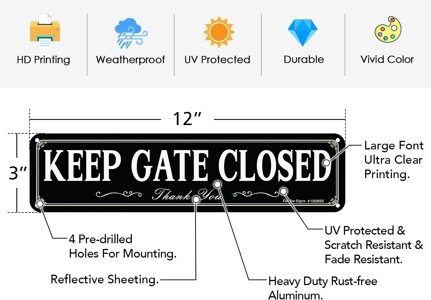 4 Pack 12X3 Inch Keep Gate Closed Sign Rust Free Aluminum Warning Sign