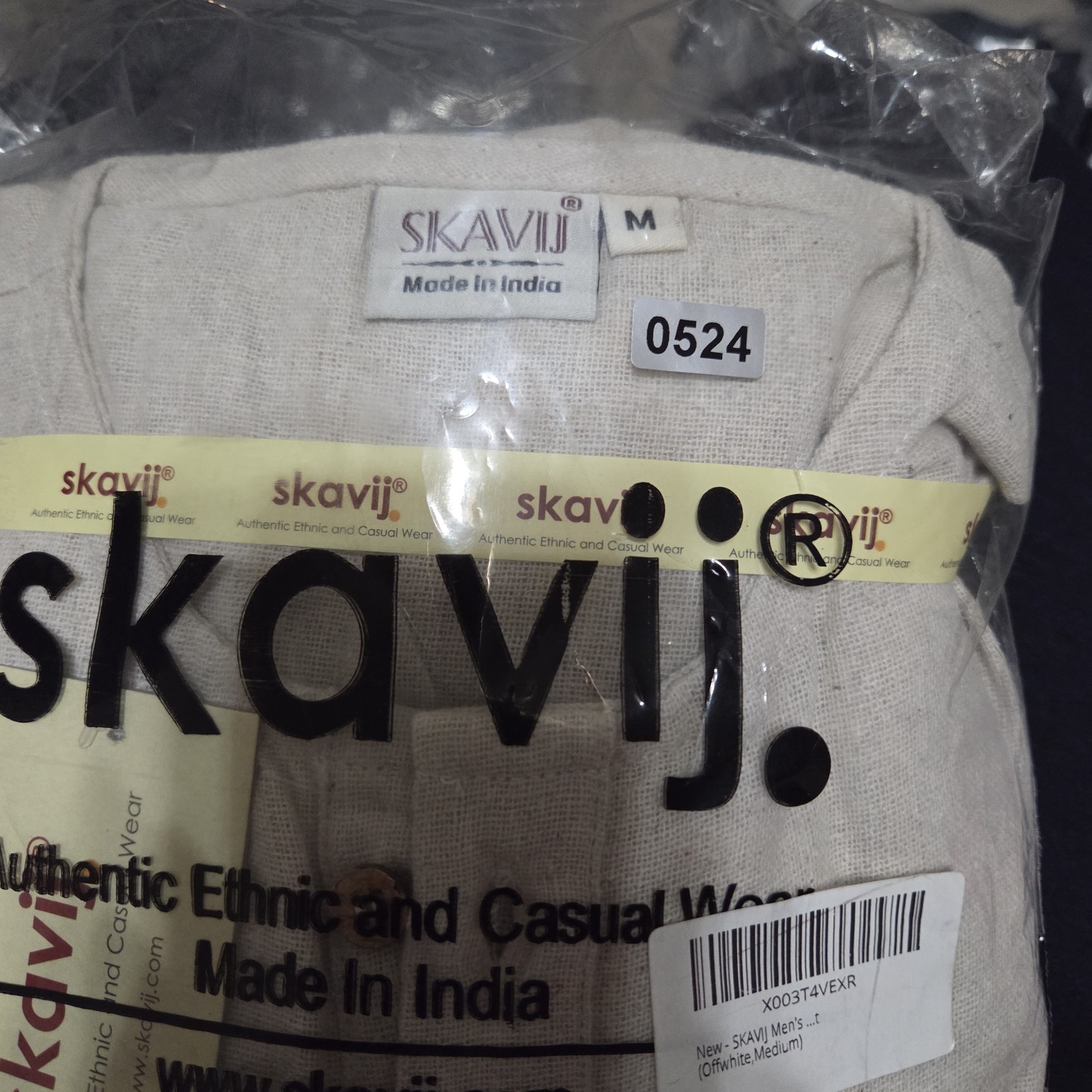 Skavij India Men Tunic Kurta Pajama Beige Tunic/ White Pant Linen Medium NWT