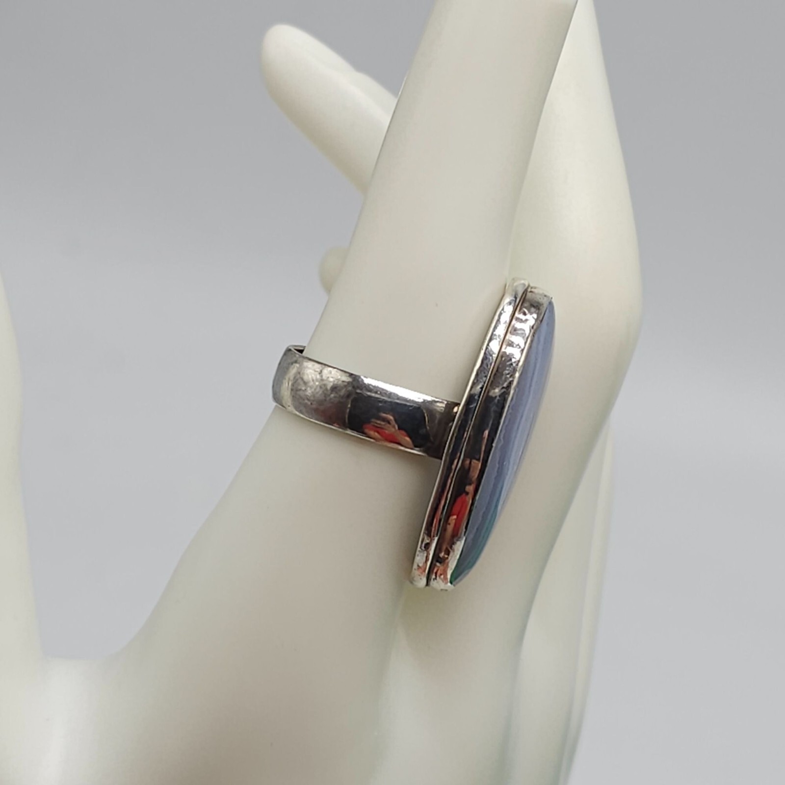 как выглядит Vintage 925 Sterling Silver Blue Lace Agate Gemstone Ring Size 8.5 фото