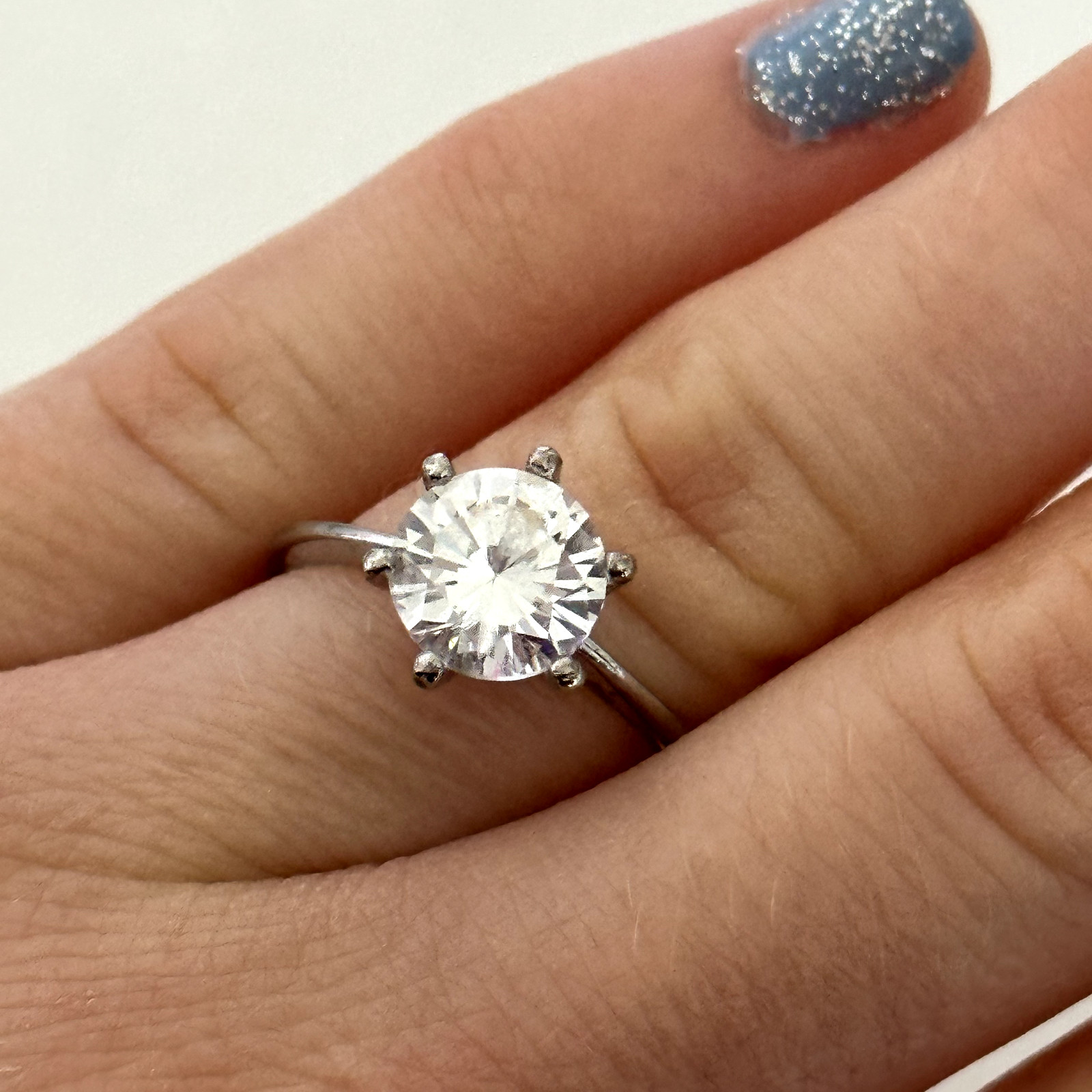 как выглядит Vintage 925 Sterling Silver Clear Cubic Zirconia CZ Engagement Band Ring Size 7 фото