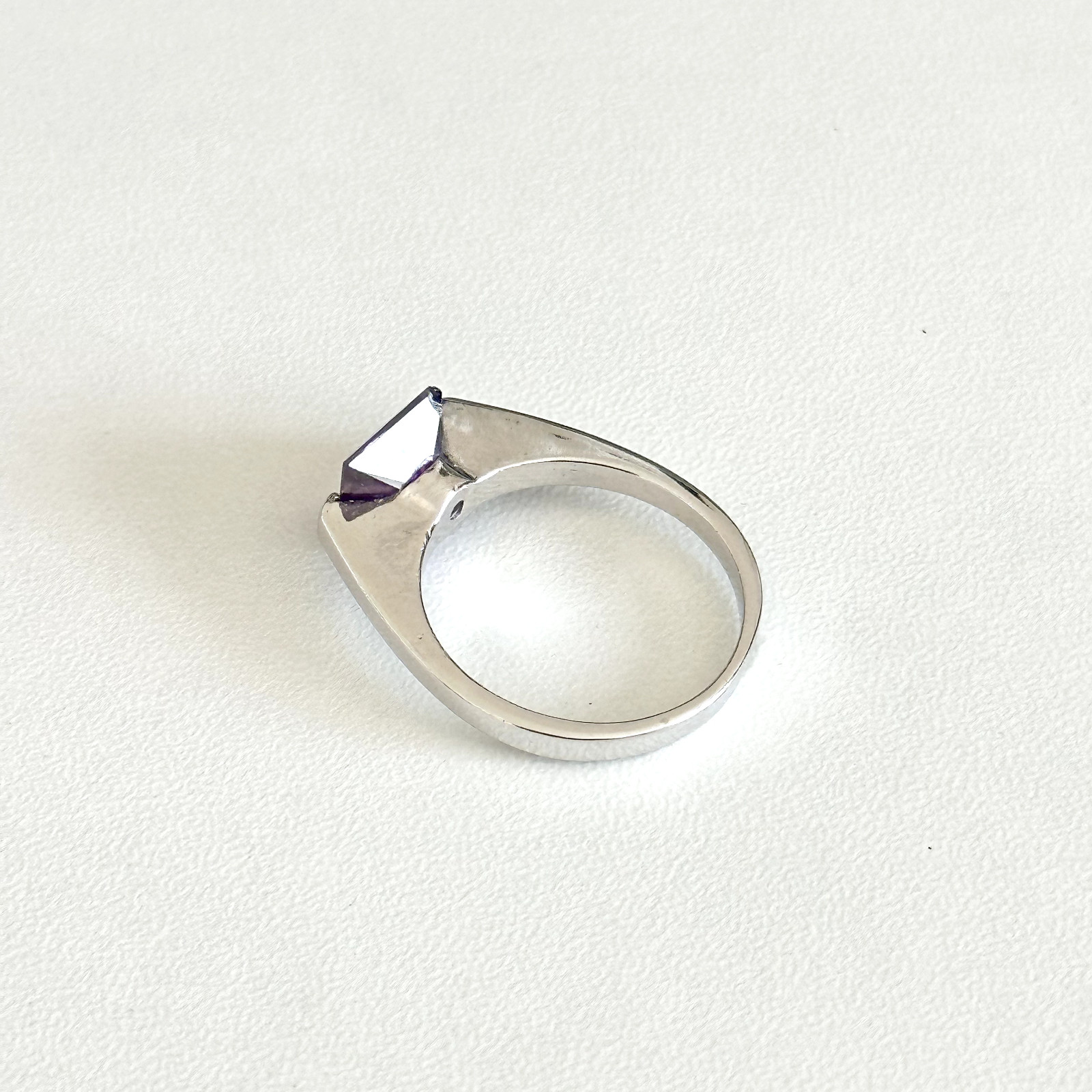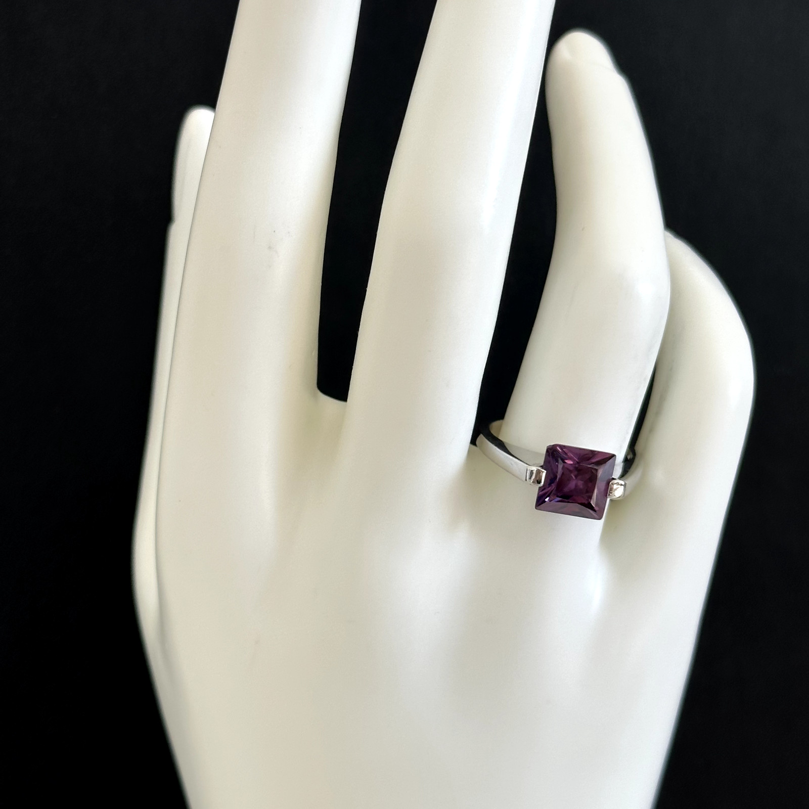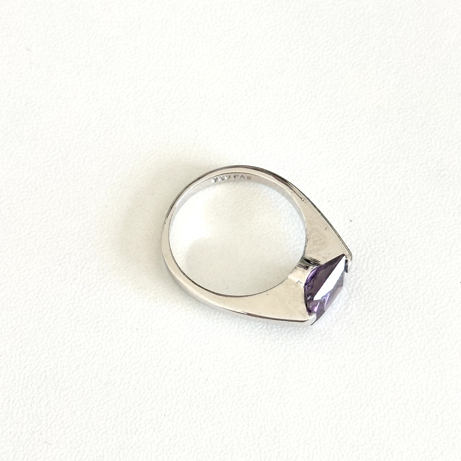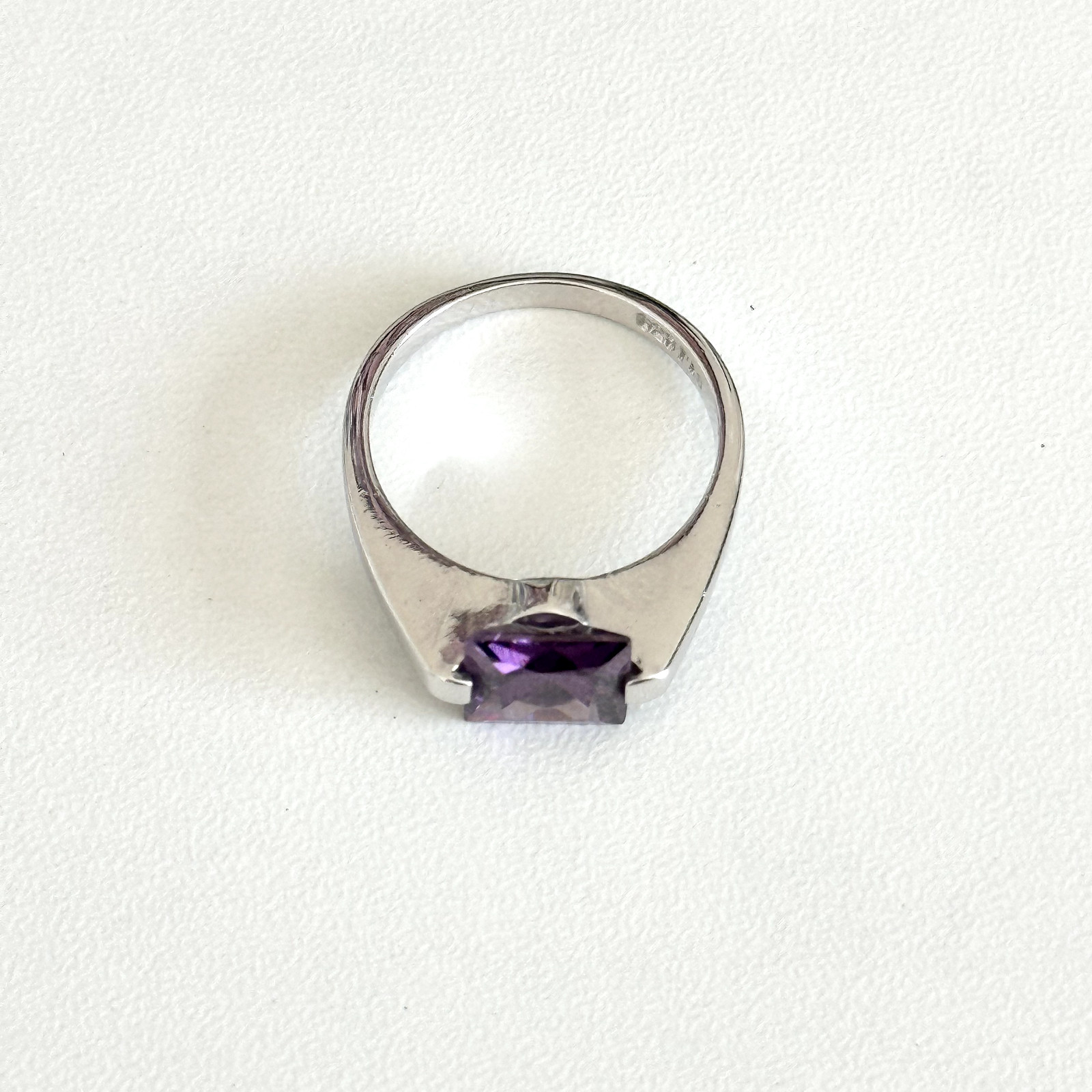 как выглядит 925 Sterling Silver Purple CZ Square Cut Ladies Modern Band Ring Size 7 фото