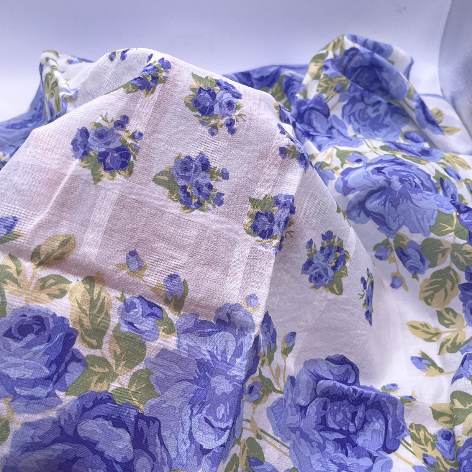 Yves Saint Laurent Scarf Cotton Blue Roses on White Square 18x18 YSL Floral