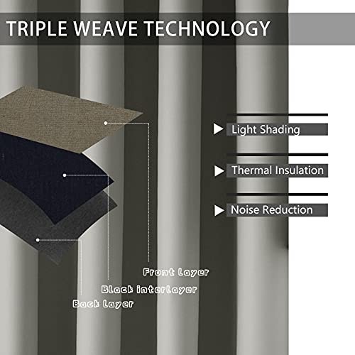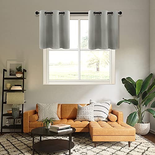 Kitchen Blackout Tier Curtains, Short Cafe 34W x 24L Pack of 2 Grey