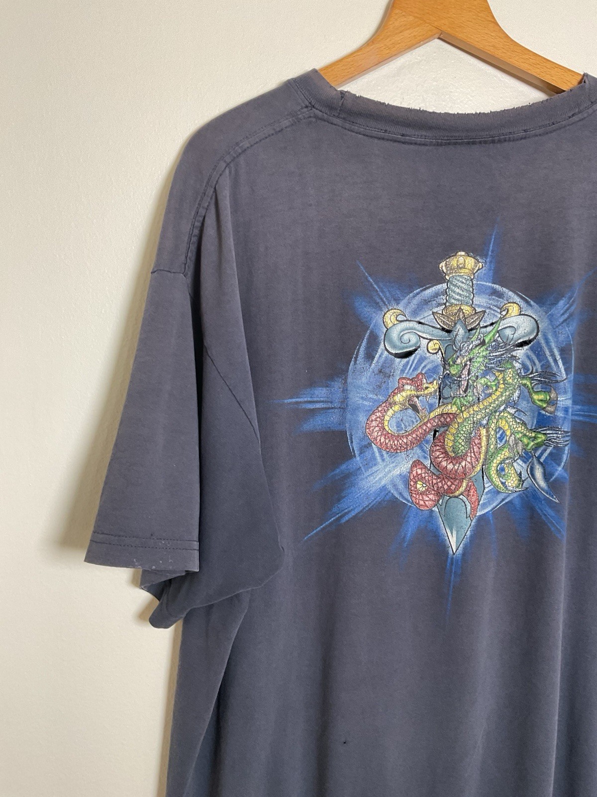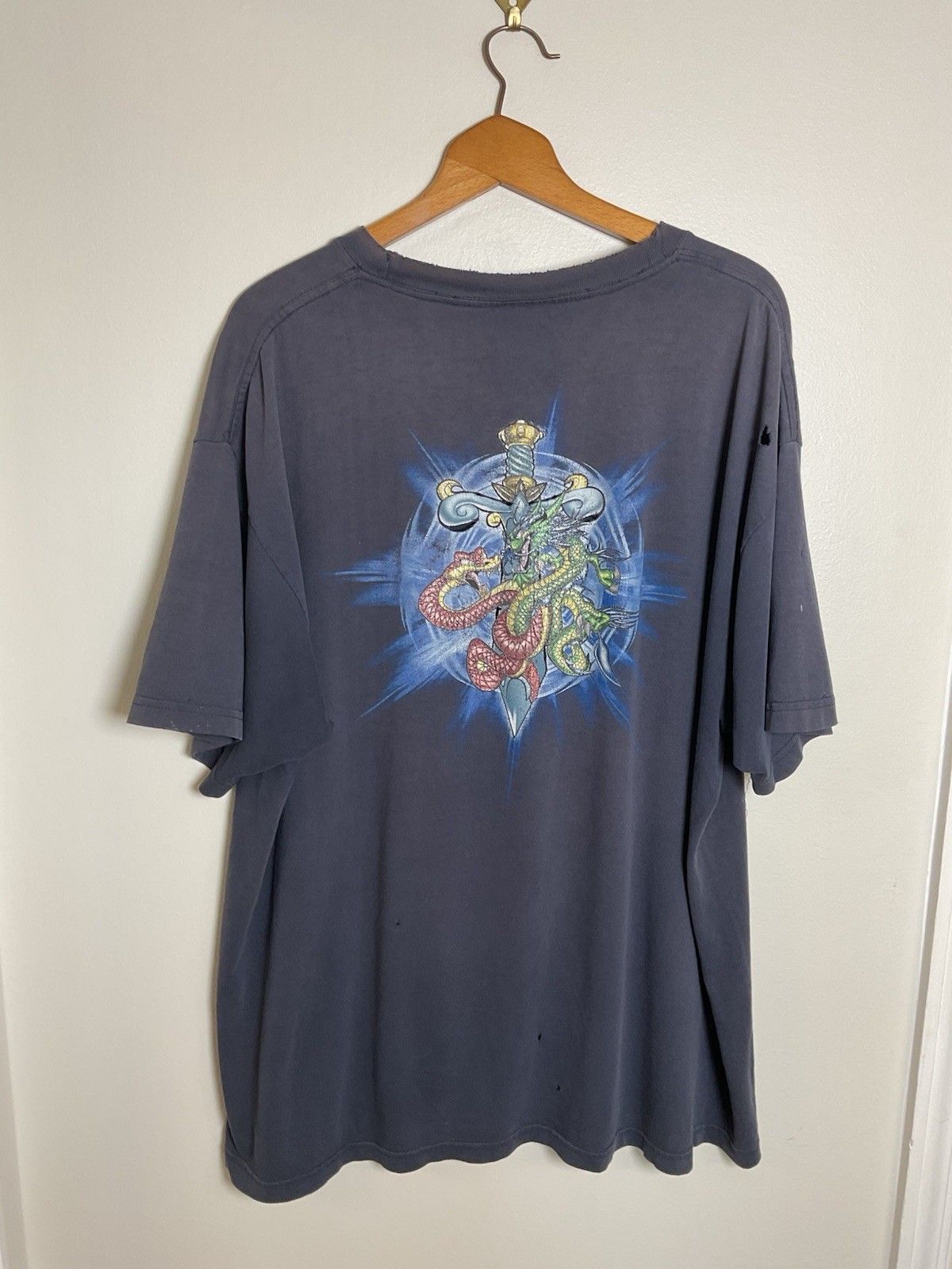 как выглядит Vintage 1990s JNCO Skater Grunge Dragon Sword Double Sided Graphic T-shirt VTG фото
