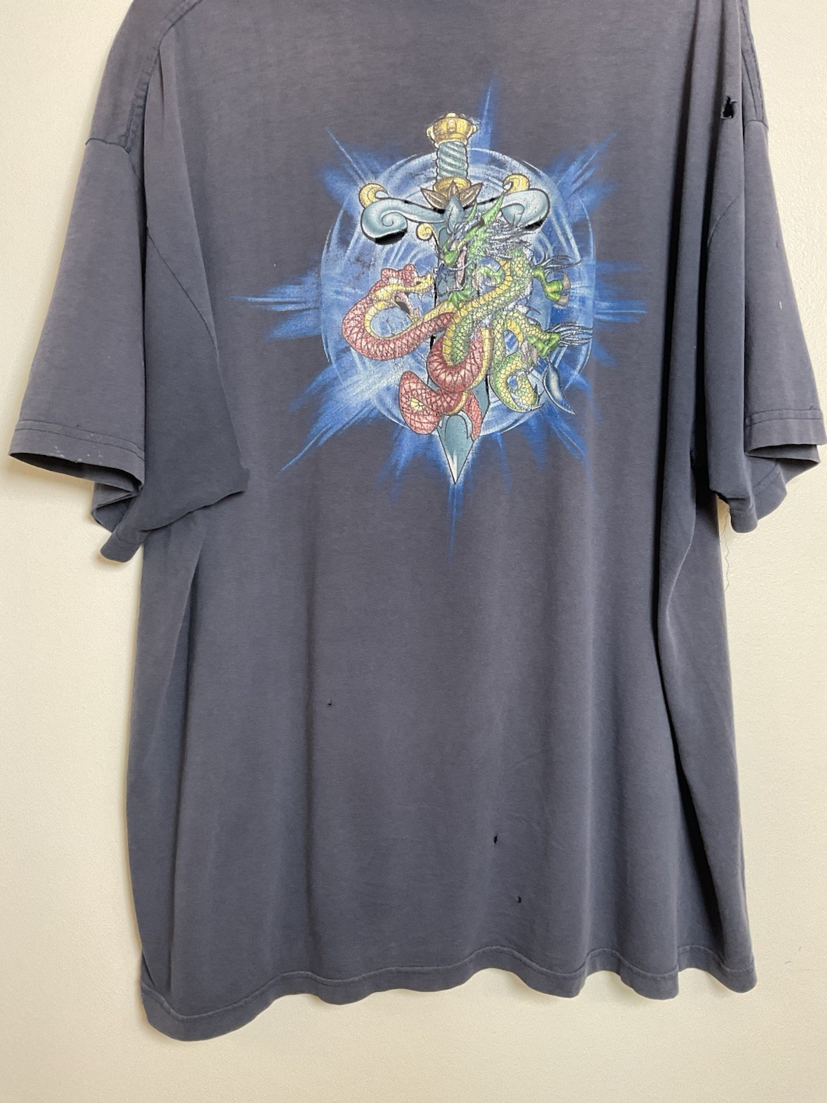 Vintage 1990s JNCO Skater Grunge Dragon Sword Double Sided Graphic T-shirt VTG