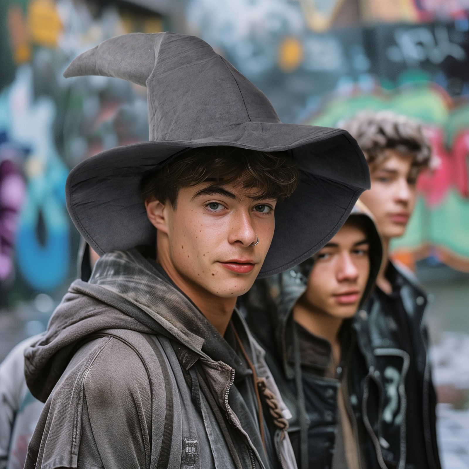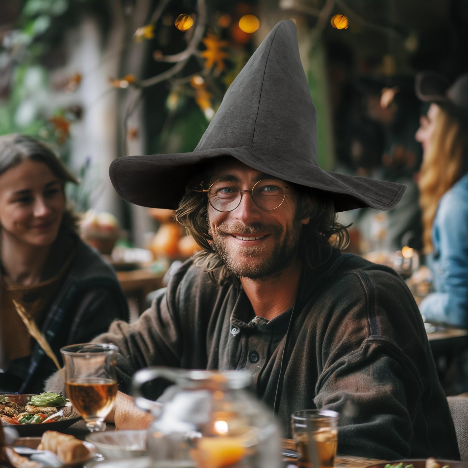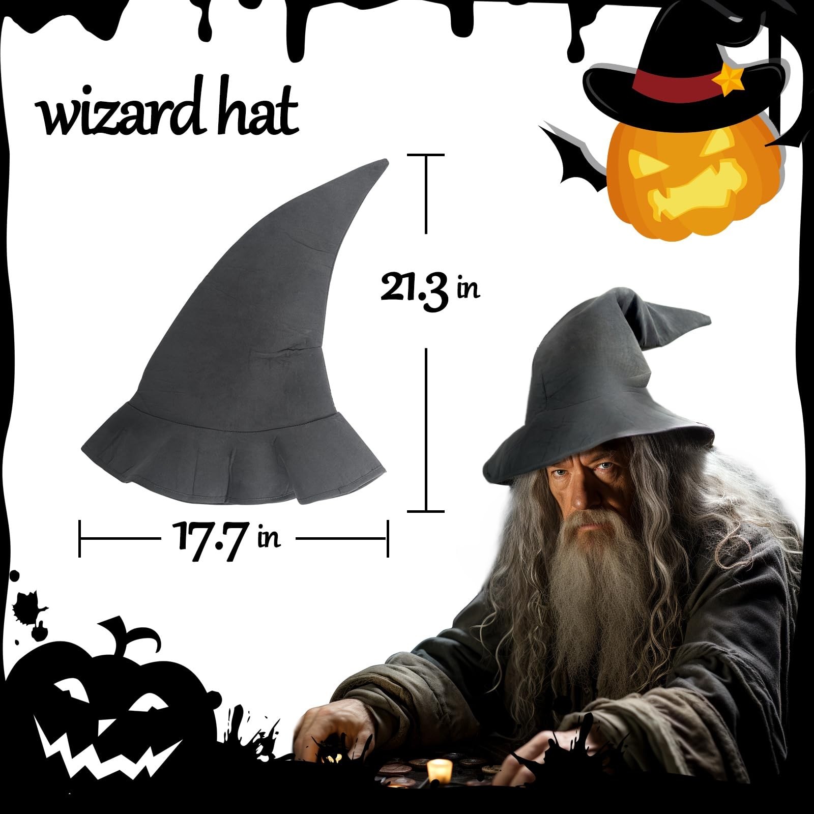 как выглядит Classic Wizard Hat for Adults Halloween Costume Sorcerer Witch Accessory Gray фото