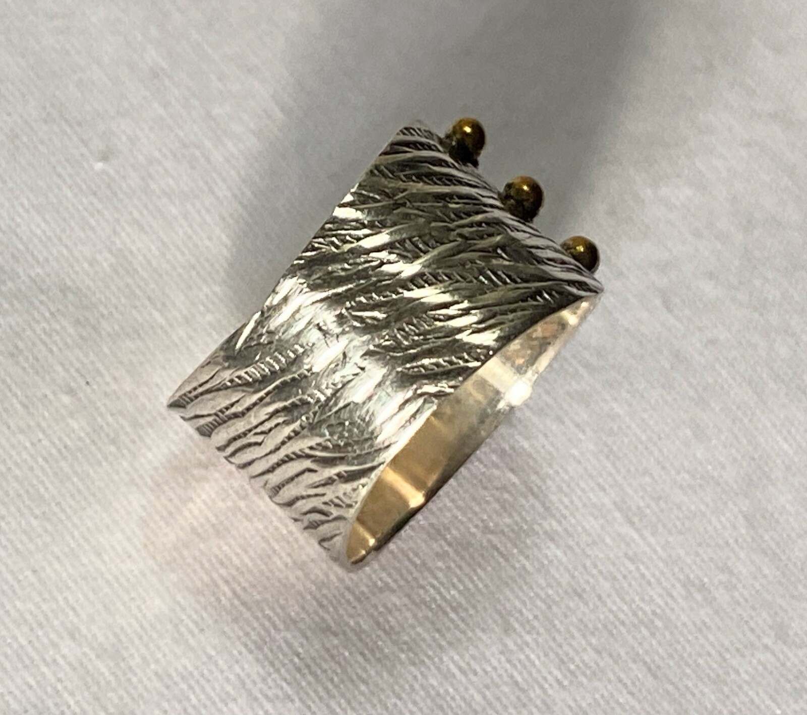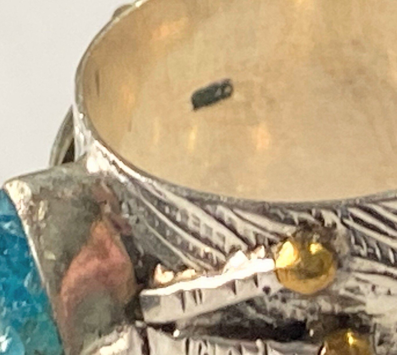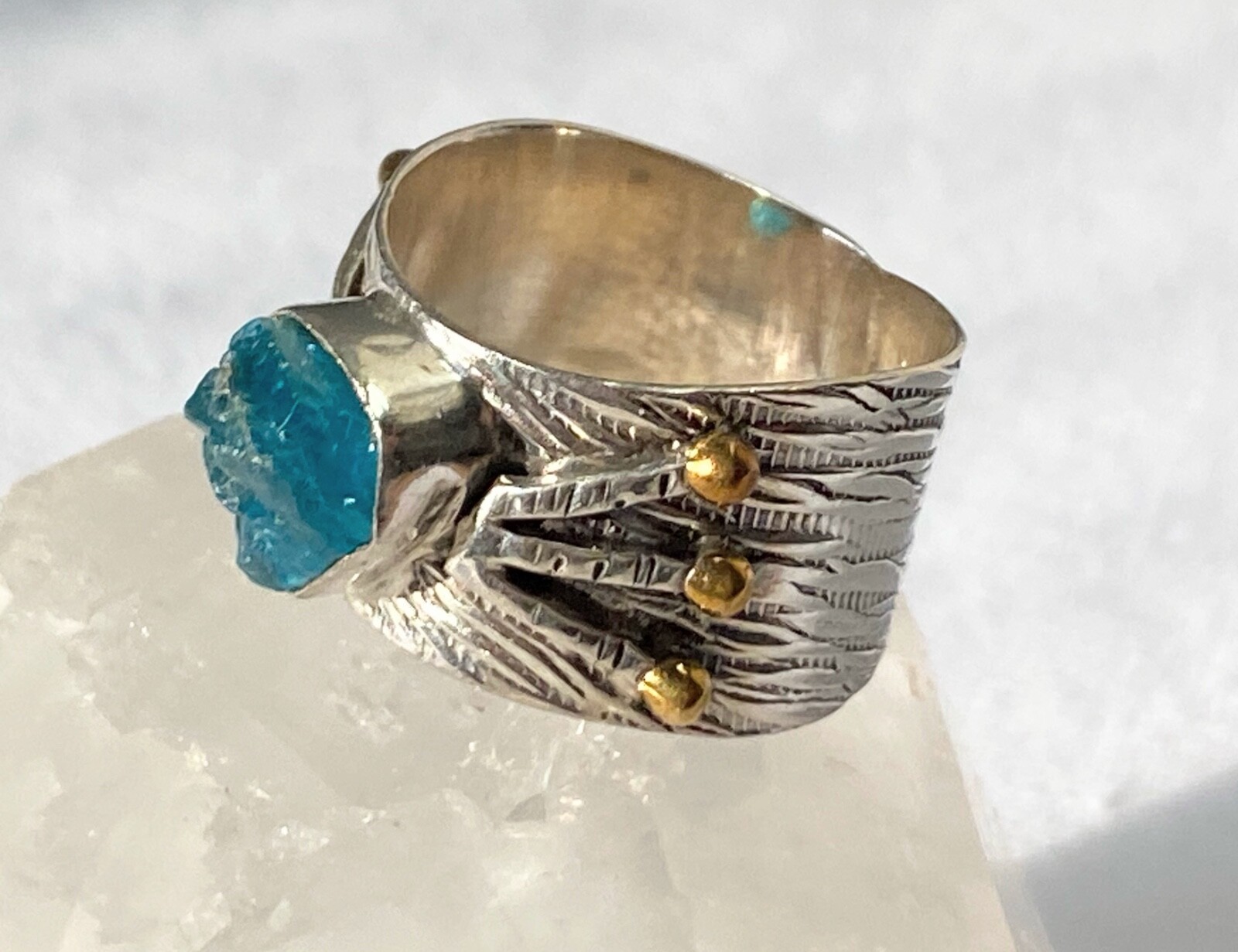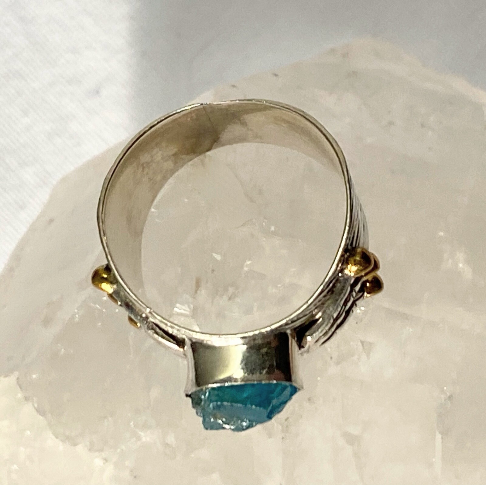 Sterling Silver 925 Neon Blue Rough Apatite Brass Dot Detail Ring Sz 7