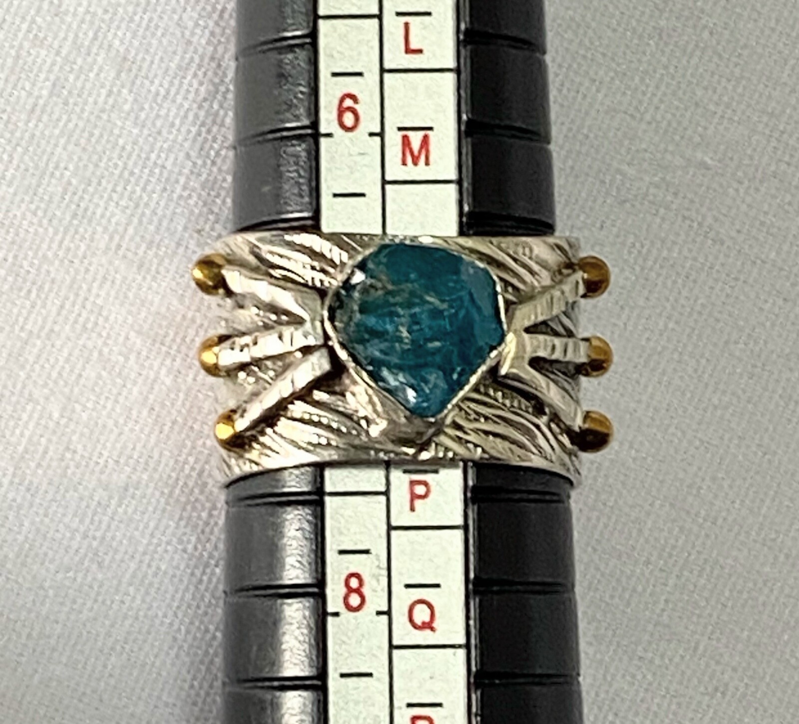 как выглядит Sterling Silver 925 Neon Blue Rough Apatite Brass Dot Detail Ring Sz 7 фото