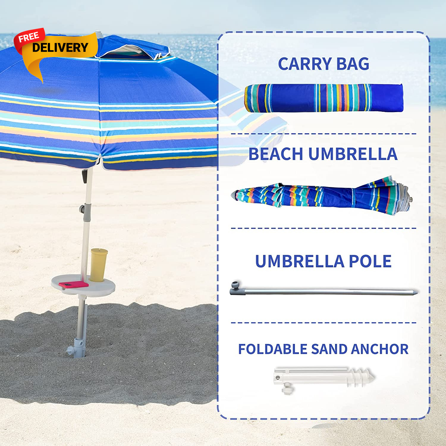 7Ft Heavy Duty High Wind Beach Umbrella Parasols with Sand Anchor Vent Tilt UV..