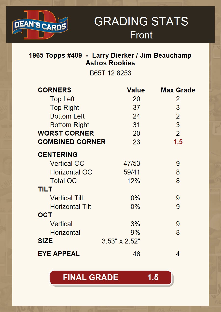 как выглядит 1965 Topps 409 Larry Dierker / Jim Beauchamp Astros RCs RC 1.5 - FAIR фото