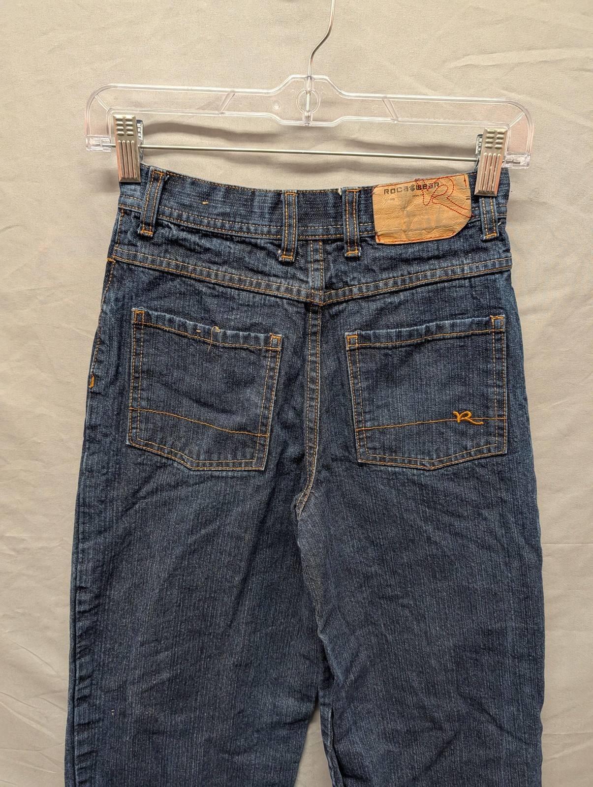 Rocawear Jeans Boys 10 Blue Denim Embroidered Logo Baggy Wide Leg Y2K Hip Hop