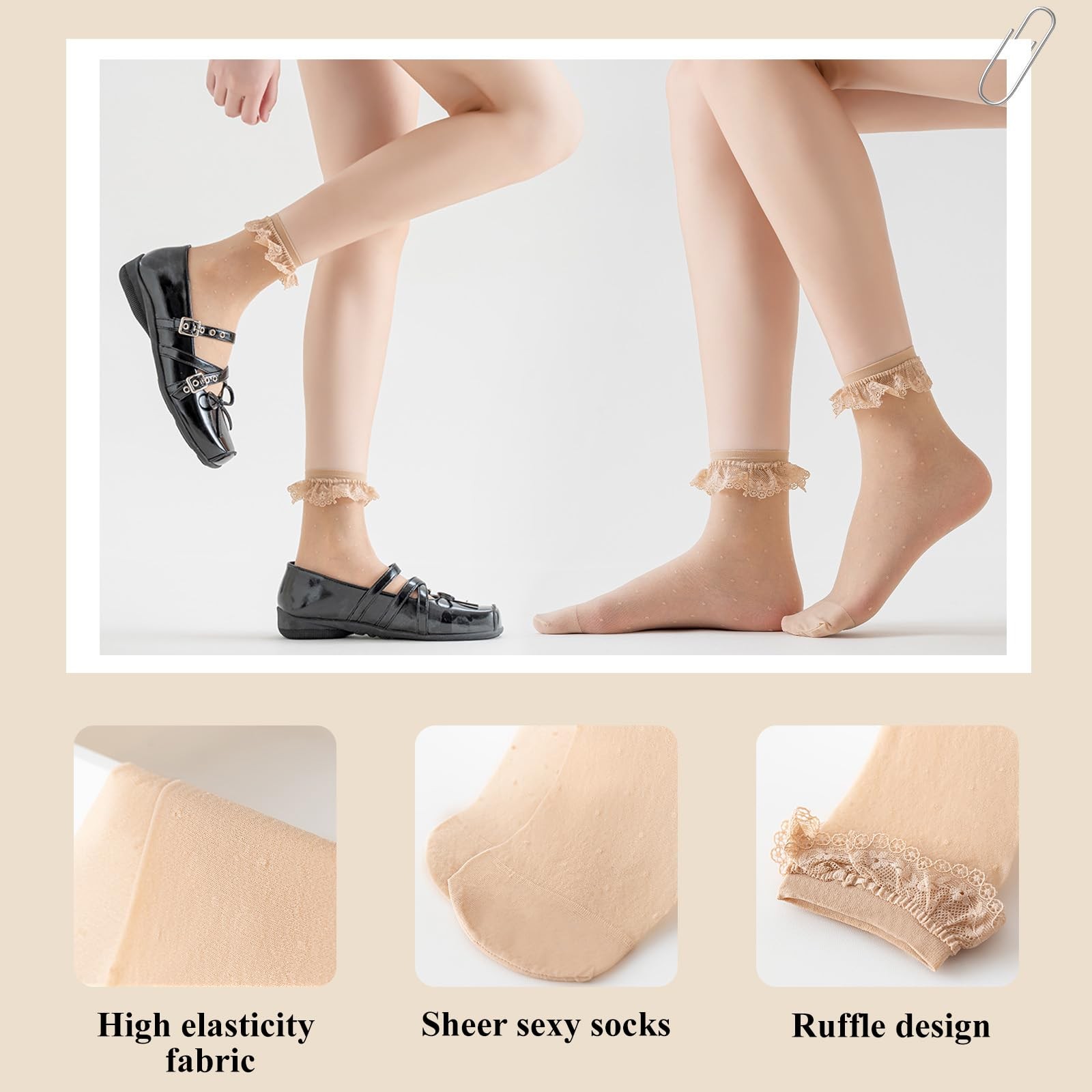 12 Pairs Women's Sheer Ruffle Socks, Lace Top-Cute Frilly Summer Ultra Thin C...
