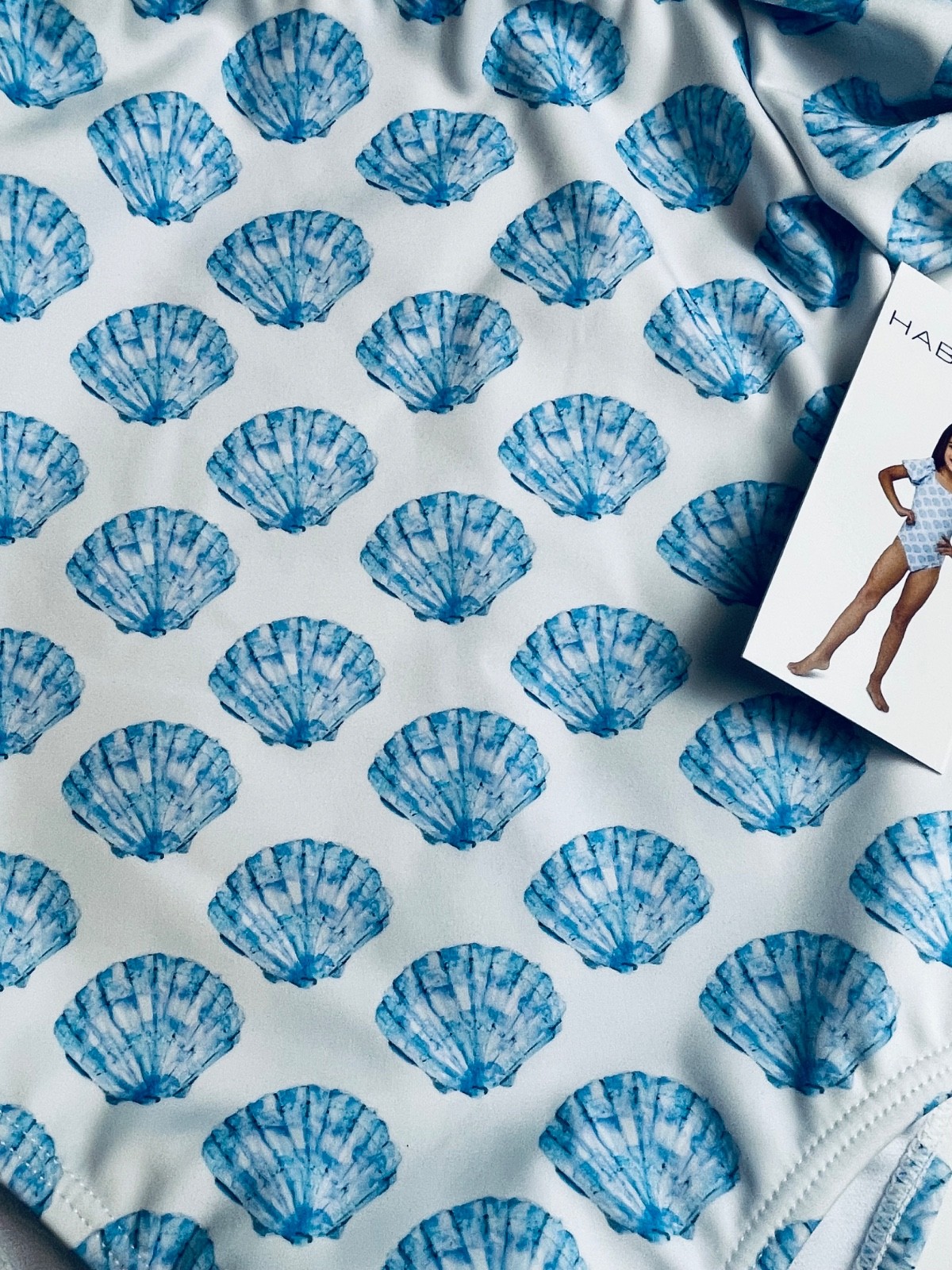 NWT Girls Habitual Swim white 1pc Swimsuit 5 6 Blue Shells puffy sleeve 44