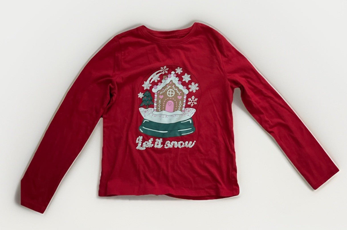 как выглядит Set of Holiday Red Long Sleeves T-Shirt and Leopard Print Leggings Size M Girls фото