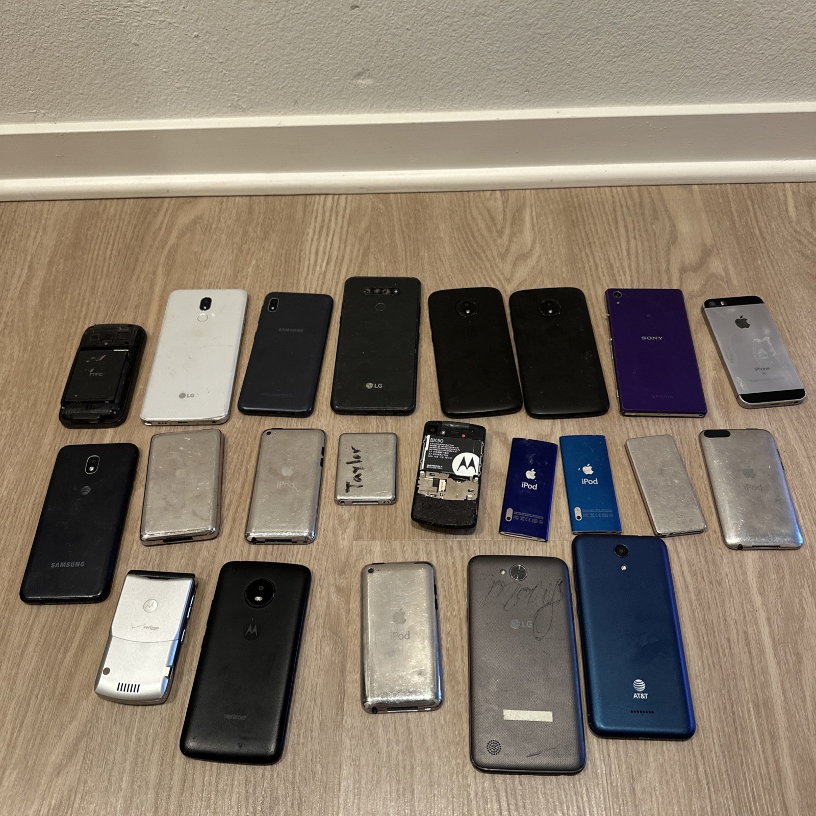 lot Of 22 Smartphones Cell phones for Parts, LG, Sony, Samsung. Motorola, iPod