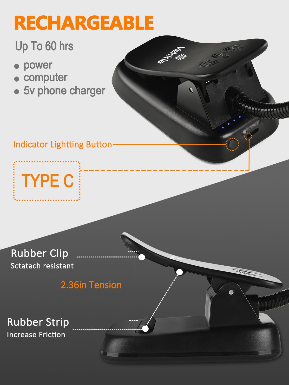 Portable LED Music Stand Light - Rechargeable 5 Brightness Levels