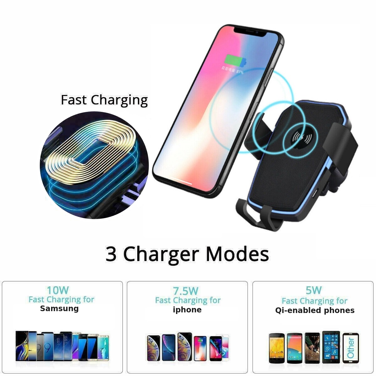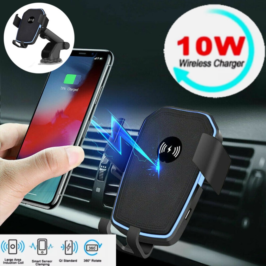 2 IN 1 Wireless Car Charger Fast Charging Mount Automatic Clamping Phone Holder