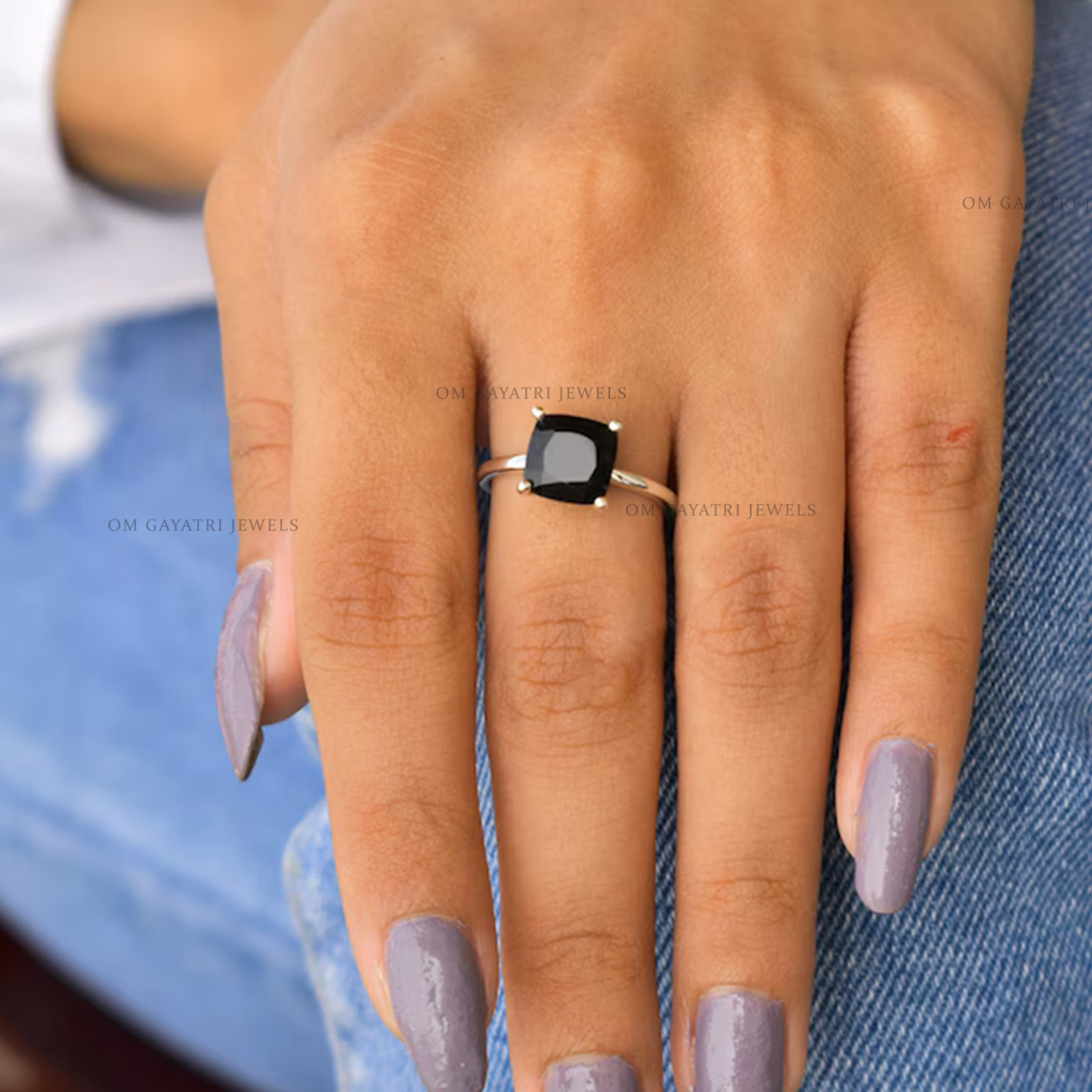 Black Onyx Ring 925 Sterling Silver Handmade Jewelry Cushion Gemstone Ring