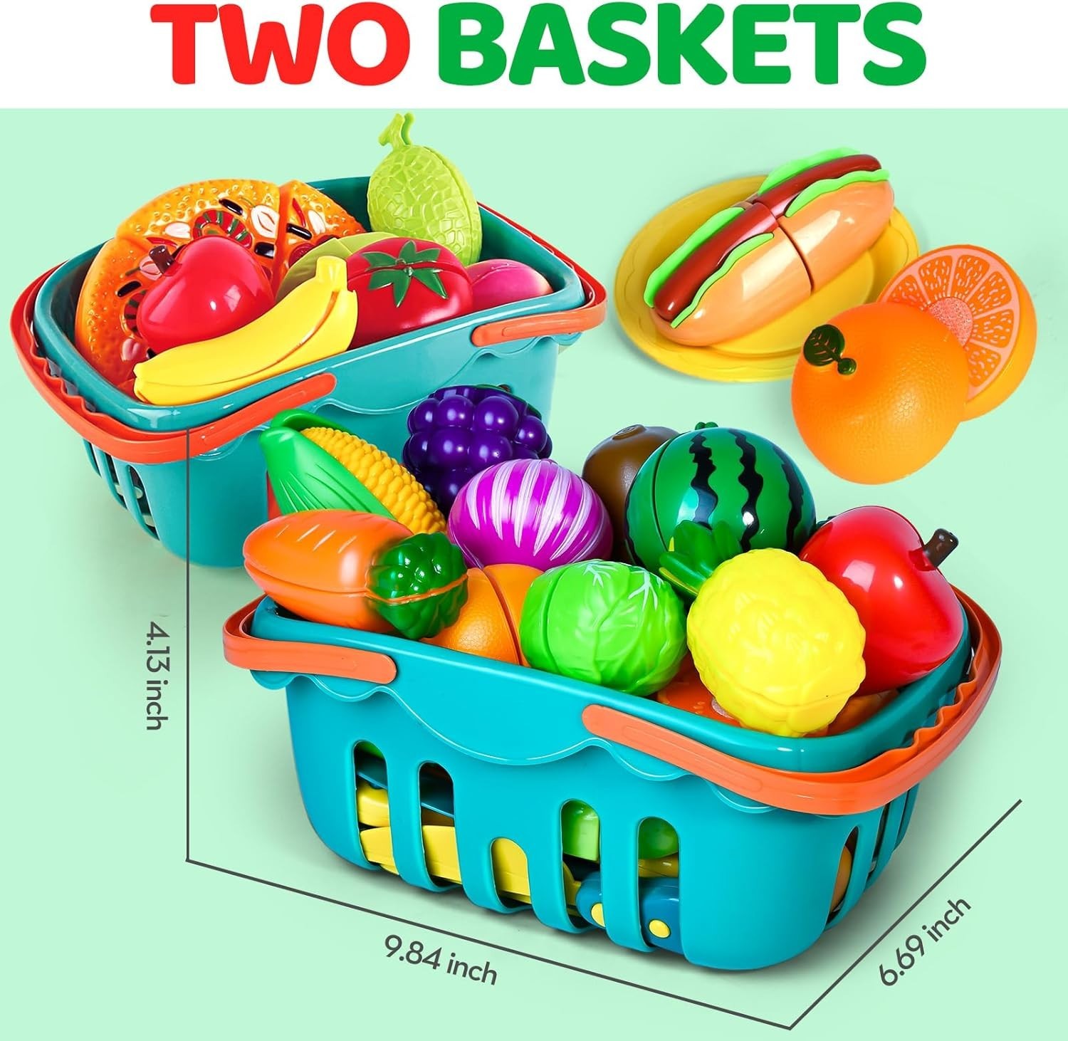 100 PCS Cutting Play Food Toy for Kids Kitchen, Pretend Food Kitche... Fast Ship