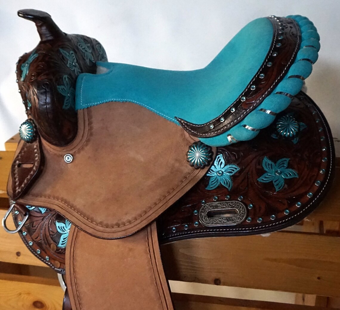 Western Horse Saddle Barrel Racing Leather Trail Tooled Carved Equestrian 10-13