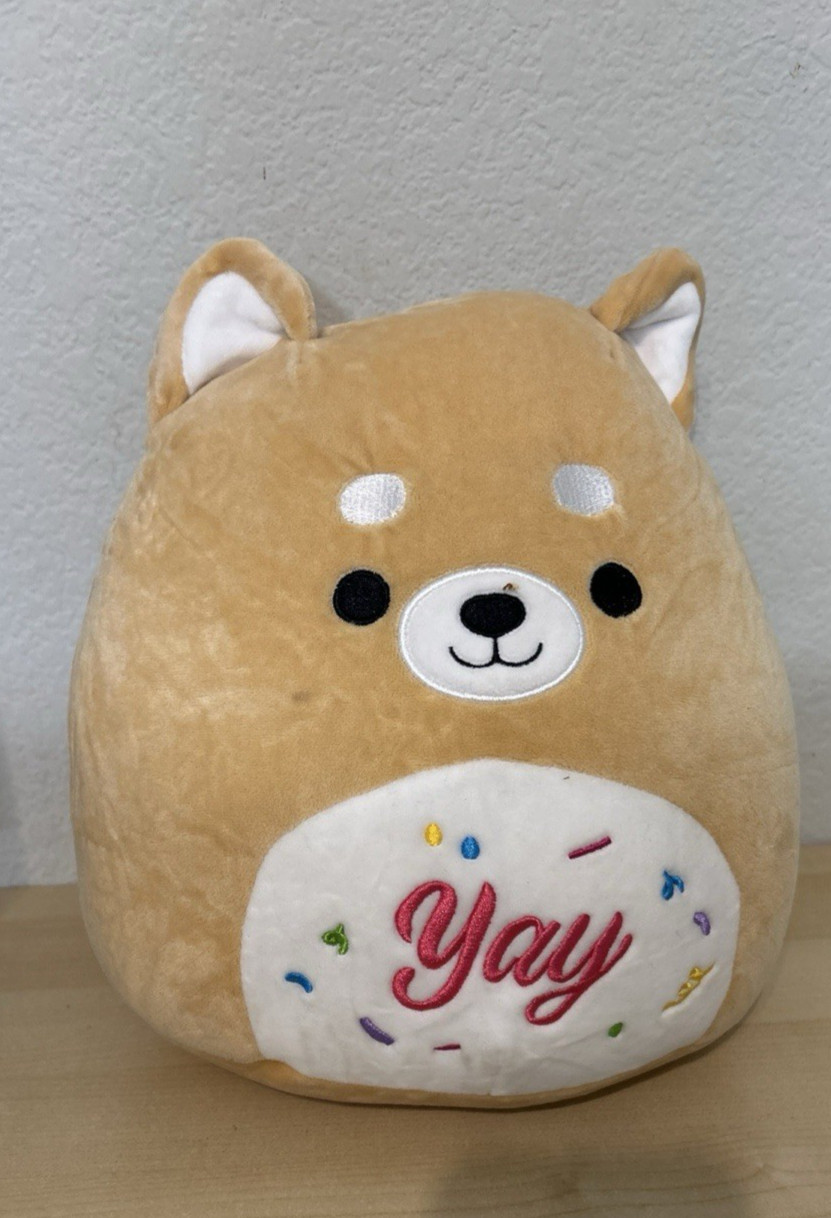 Squishmallow Birthday Angie the Shiba Inu Dog Plush Celebrate Yay 12 Kellytoy