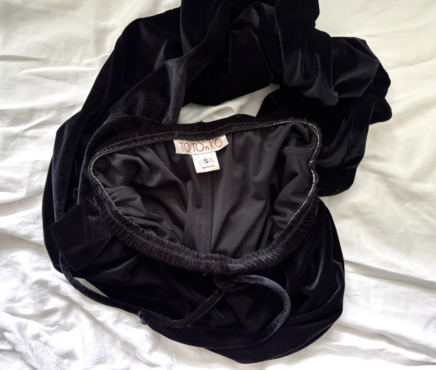 как выглядит 90s Vintage Totonko Black Velvet Wide-leg Pants Size Small фото