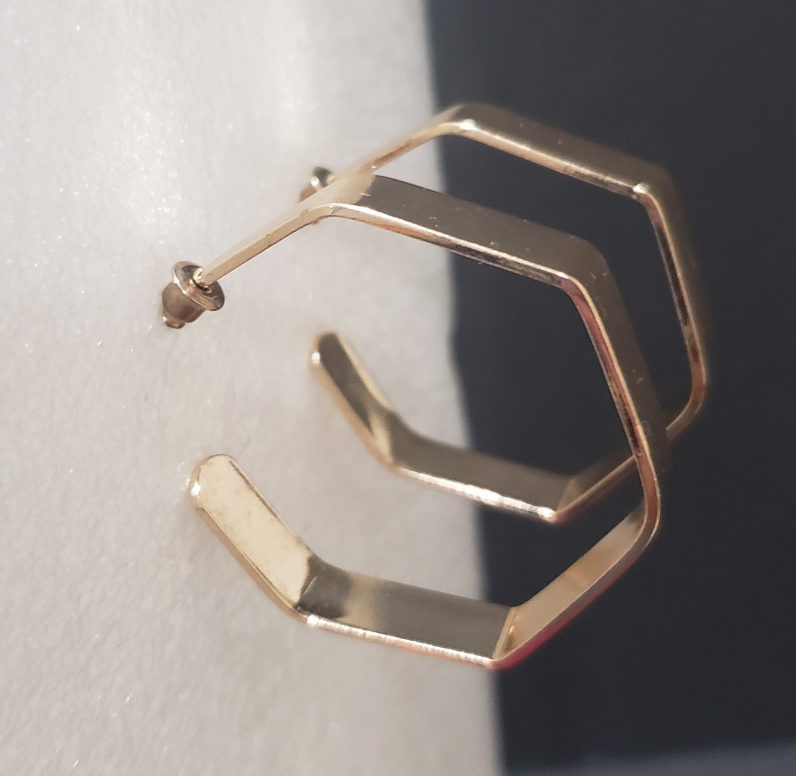 как выглядит Vintage Womens Quality Goldtone Elegant Large Octagon Hoop Pierced Earrings фото