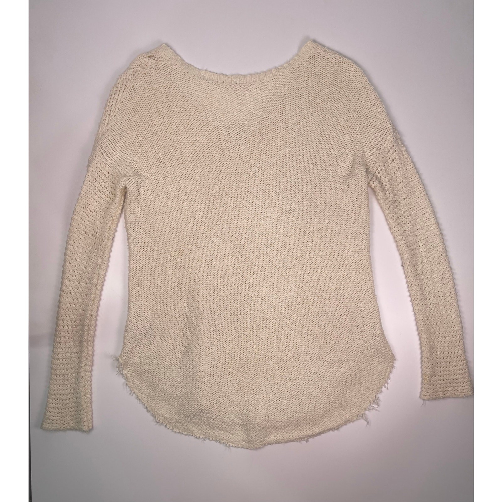 Free People Oversized Ivory Knit Sweater Slouchy V Neck, 100 Cotton