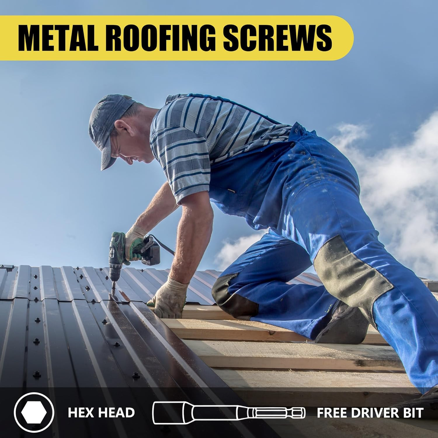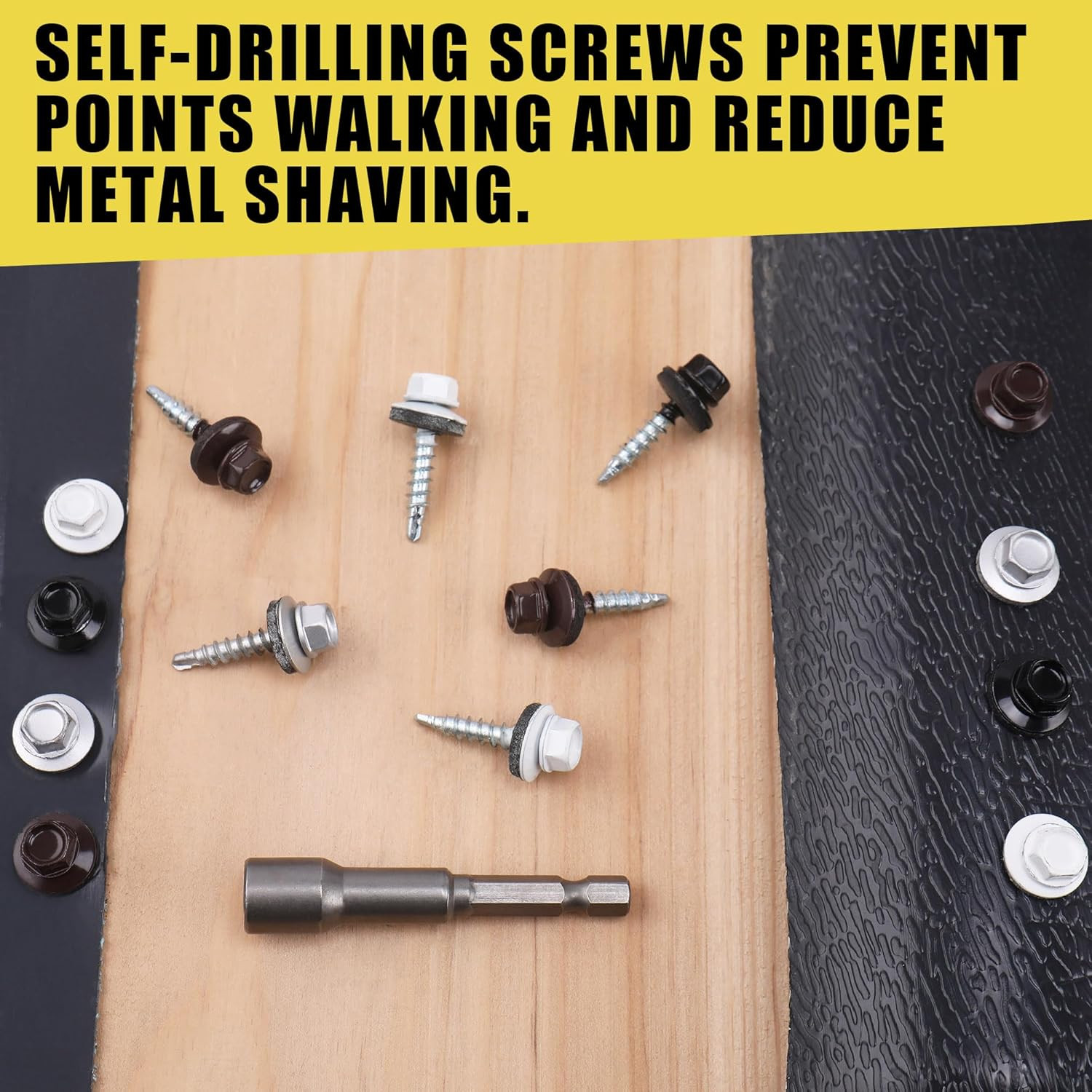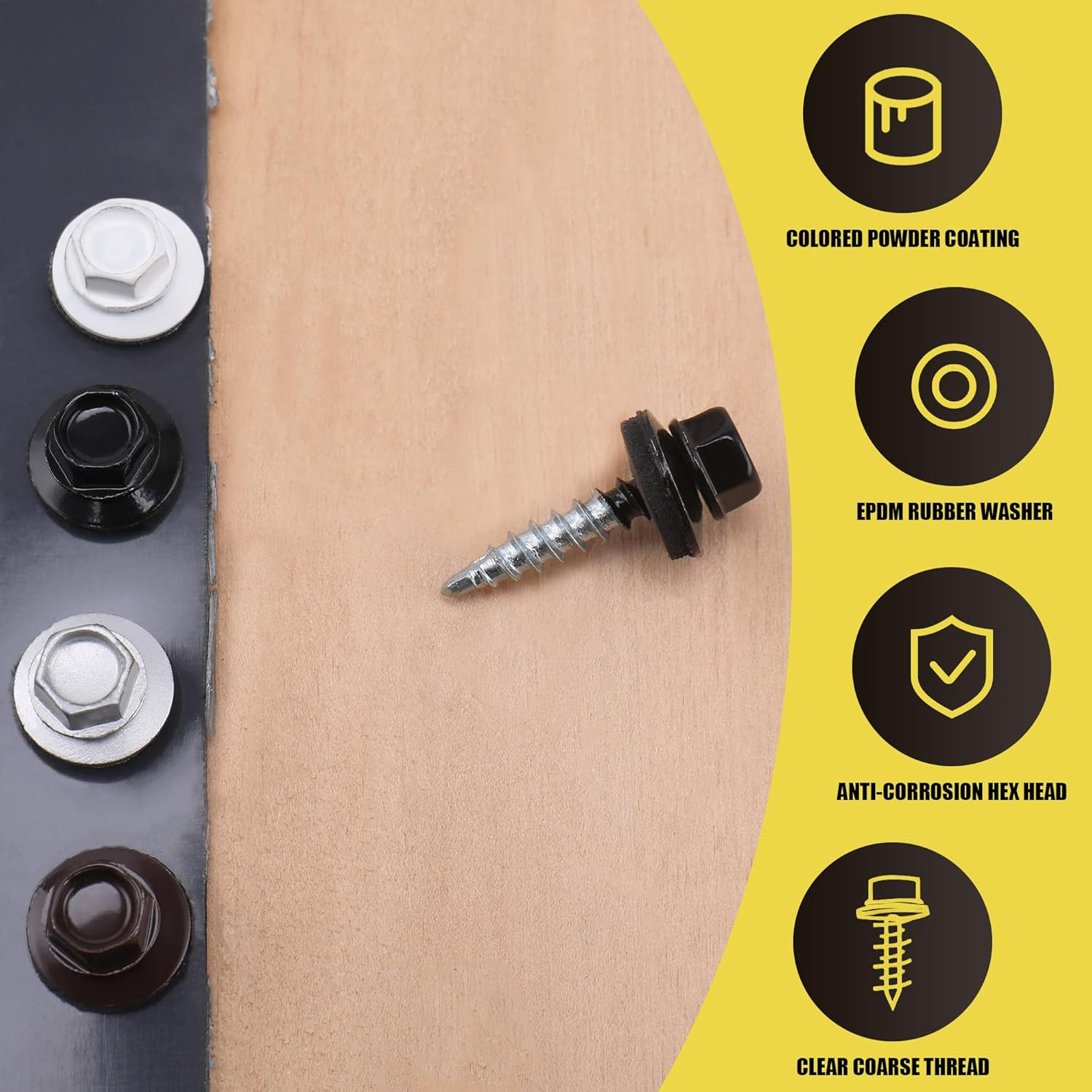 300pcs 10 x 1 White Hex Head Self-Drilling Metal Roofing Screws, EPDM Washer...