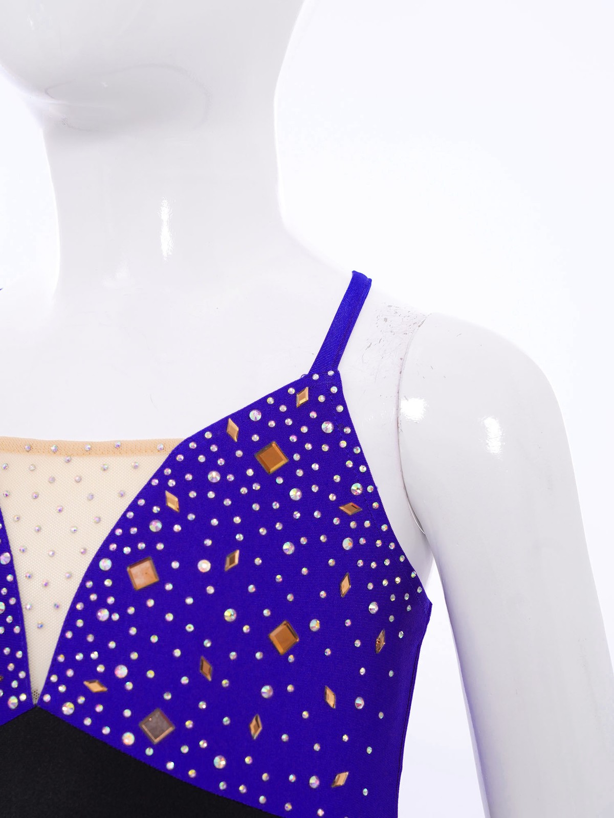 Girls Glittery Rhinestone Lyrical Dance Dress Sleeveless Sparkly Figure Skating