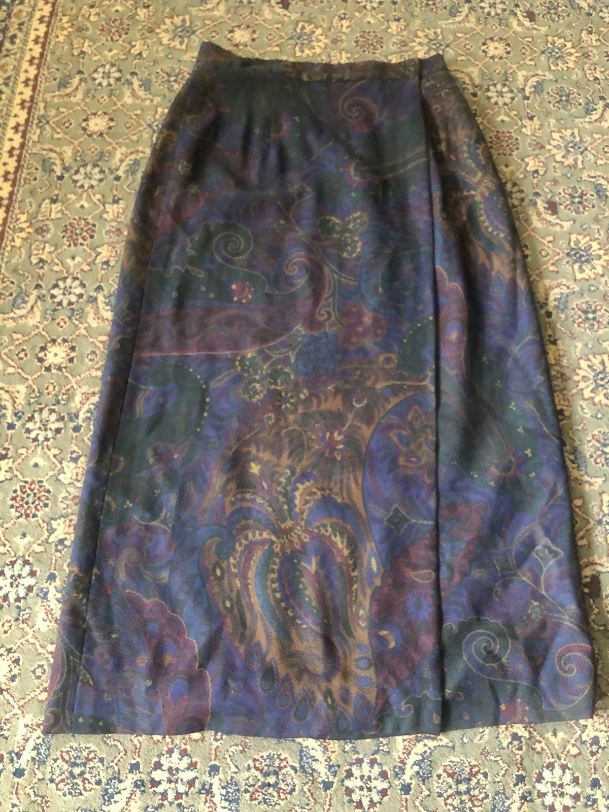 как выглядит 1990 s Ralph Lauren Wool Jewel Toned Paisley Wrap Skirt, Blue Label фото