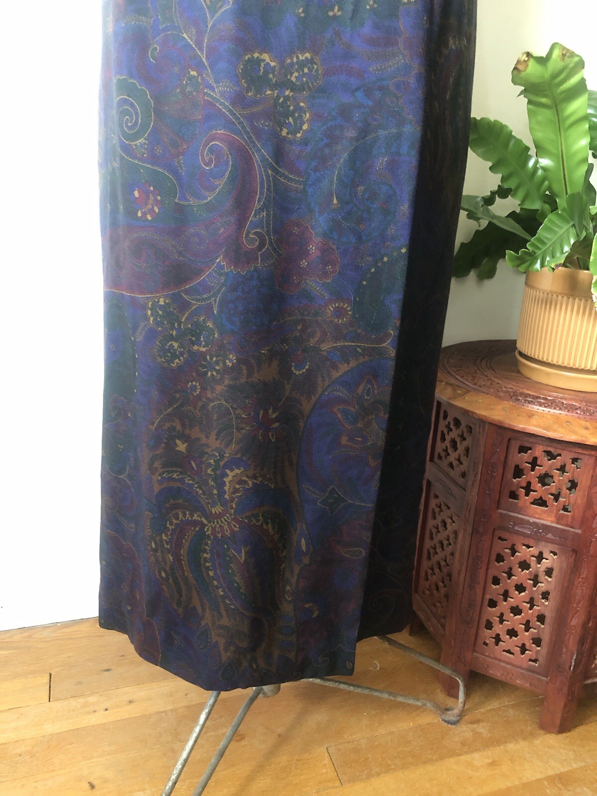 1990 s Ralph Lauren Wool Jewel Toned Paisley Wrap Skirt, Blue Label