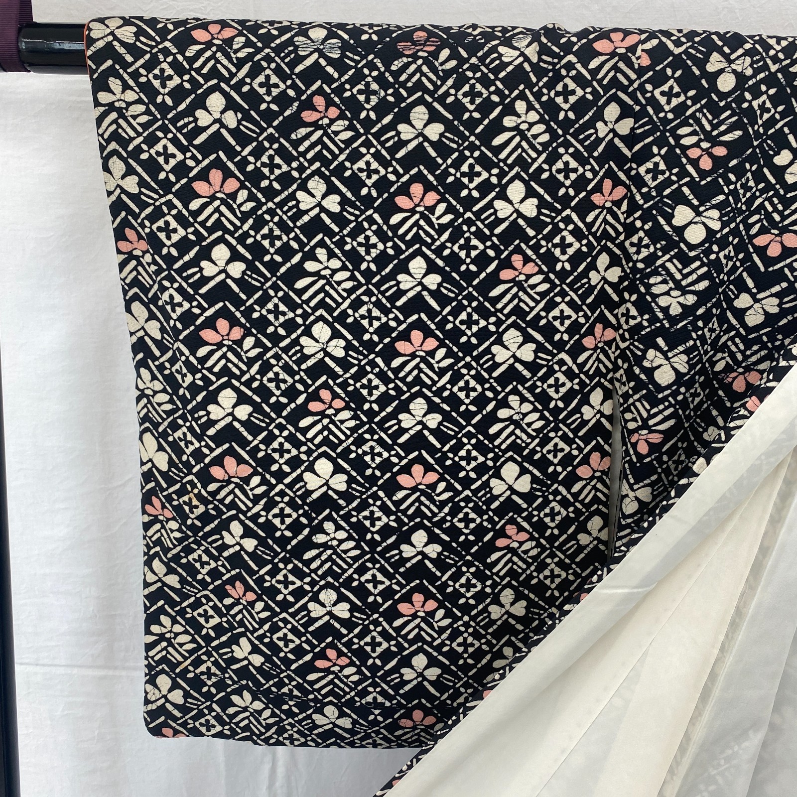 Japanese Vintage Kimono Silk Black Komon Traditional Authentic Length 60 in