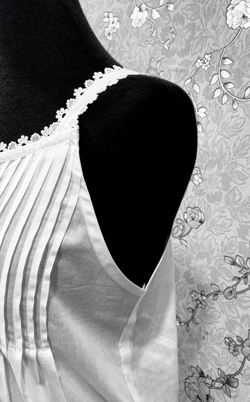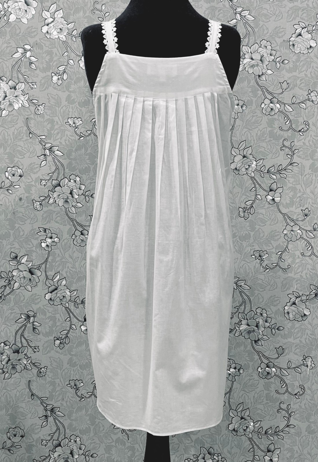 SoieRose SR-1215 Victorian Cotton Nightgown Sleeveless Lace Trim Pintuck Front