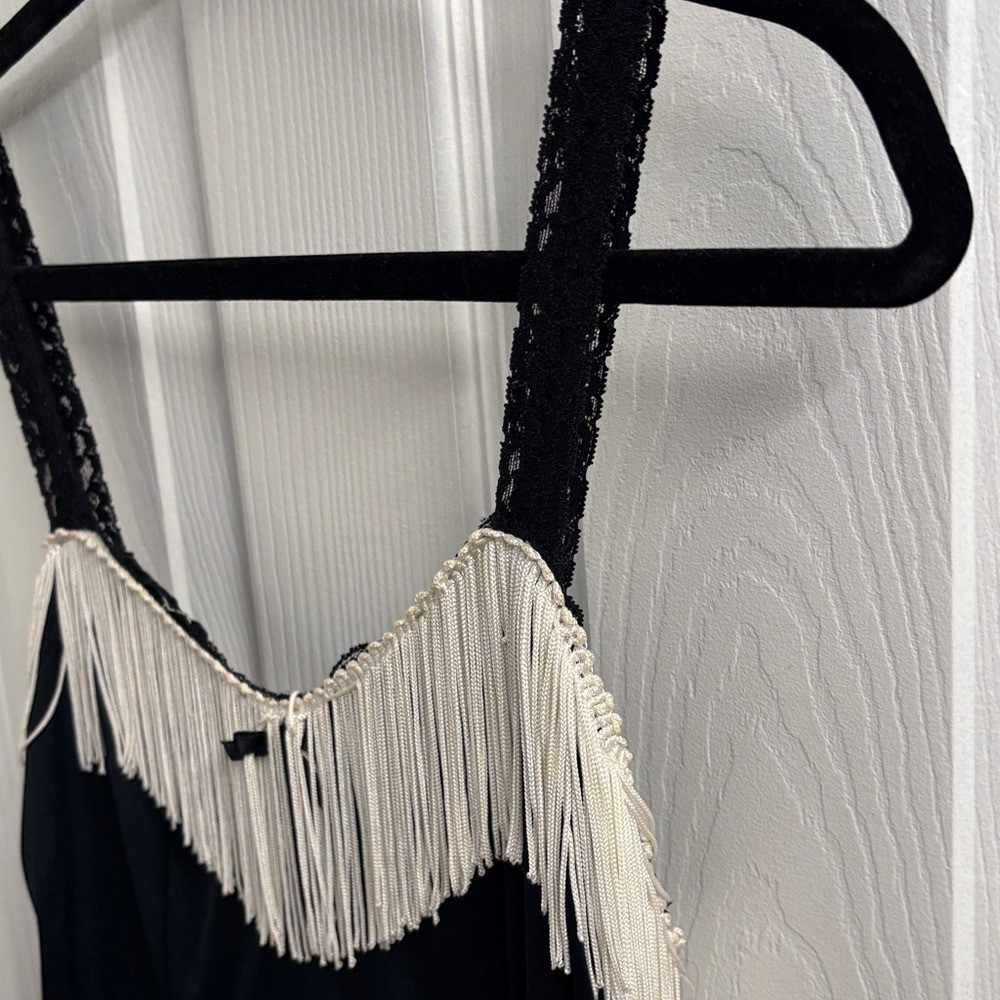 как выглядит Flapper Style Black Dress Fringe Details- Modified Lingerie Slip Olga Size 36 фото